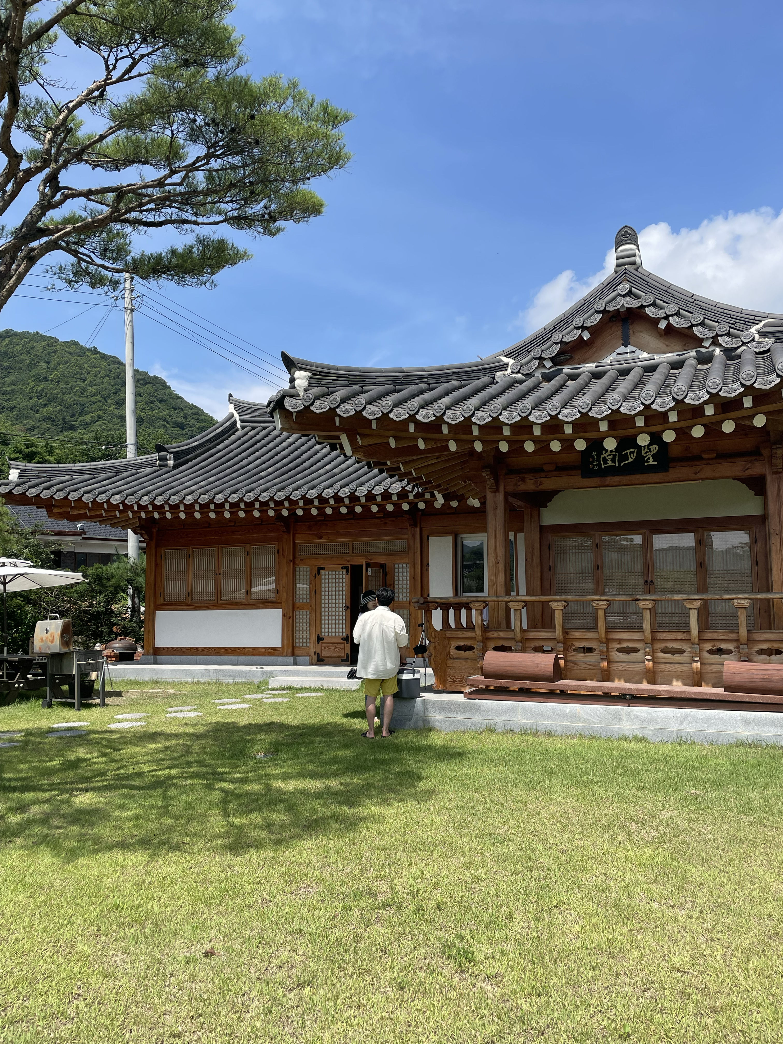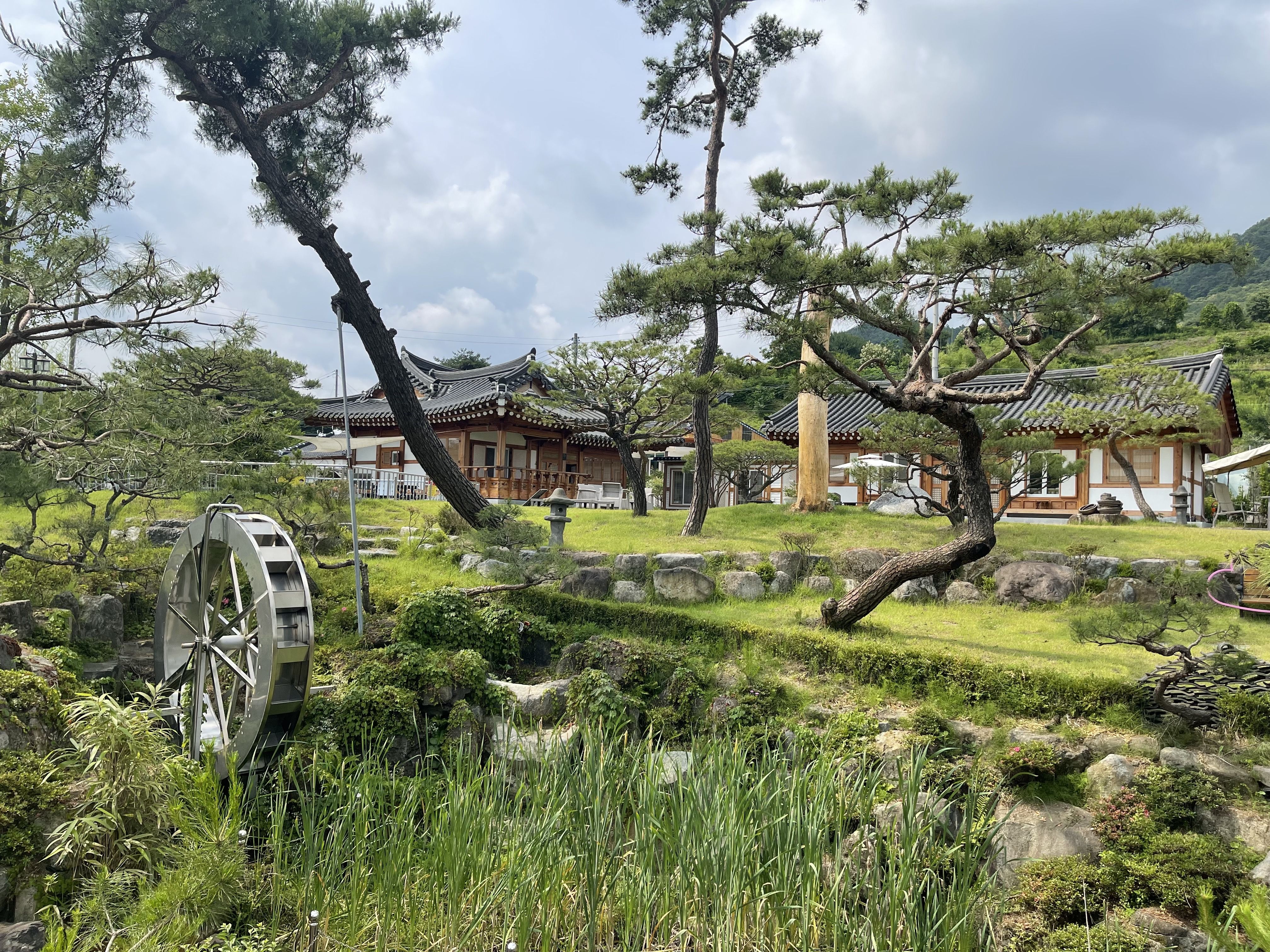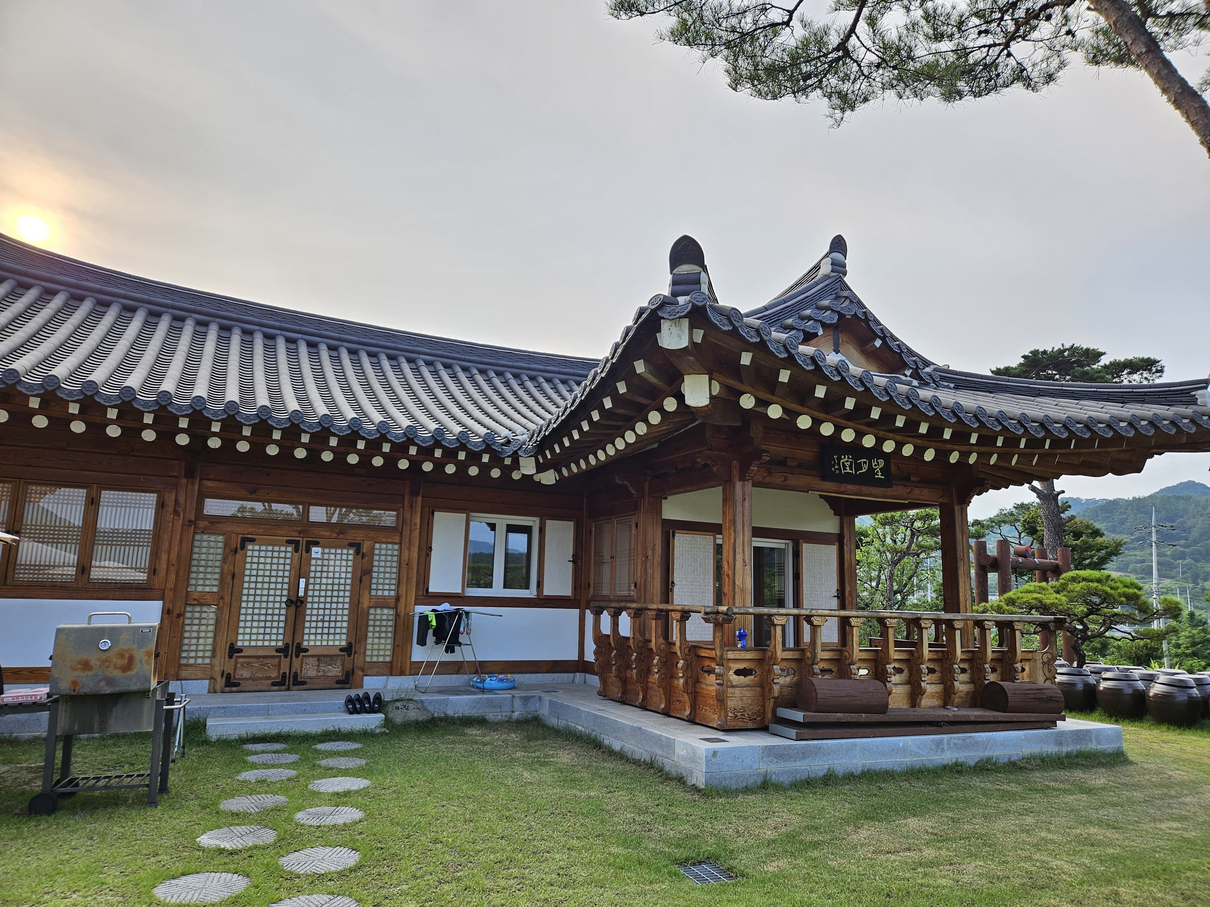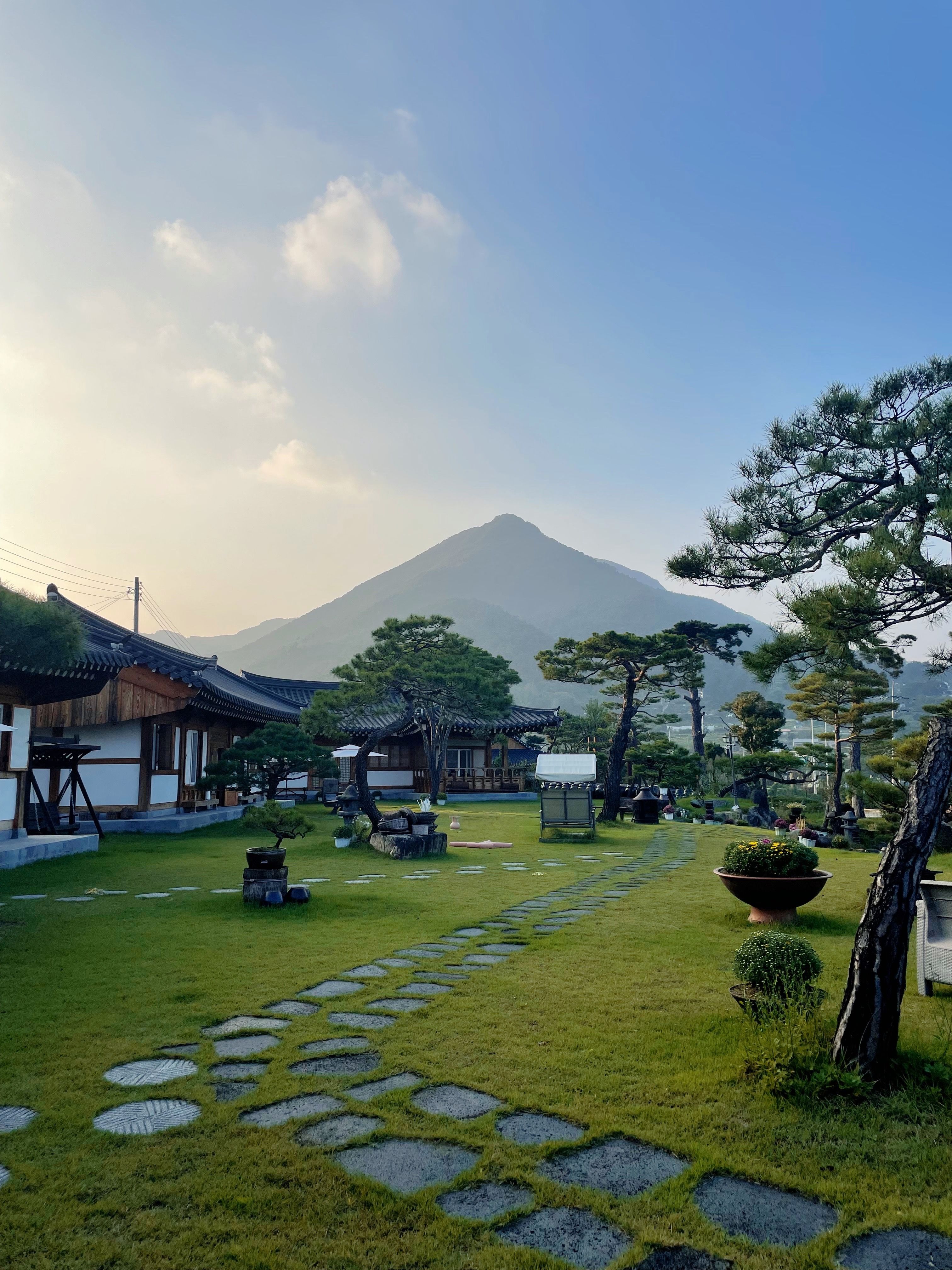 정원이 정말 이쁘게 잘 조성되어있으며 안방에서 산이보이는 뷰가 너무 이쁩니다. 월컴서비스로 허브티와 비오는 날에 맞게 김치전을 해주셔서 너무 맛있게 먹었습니다. 실내는 피톤치드 향에 취해 살림욕을 받는 효과가 있으며 현대식으로 너무 깨끗하고 편리하게 잘 되어 있습니다. 다음날 아침 조식서비스가 감동 감동!! 비오는날 개구리 우는 소리가 한옥펜션에 온 걸 보람차게 해줍니다.