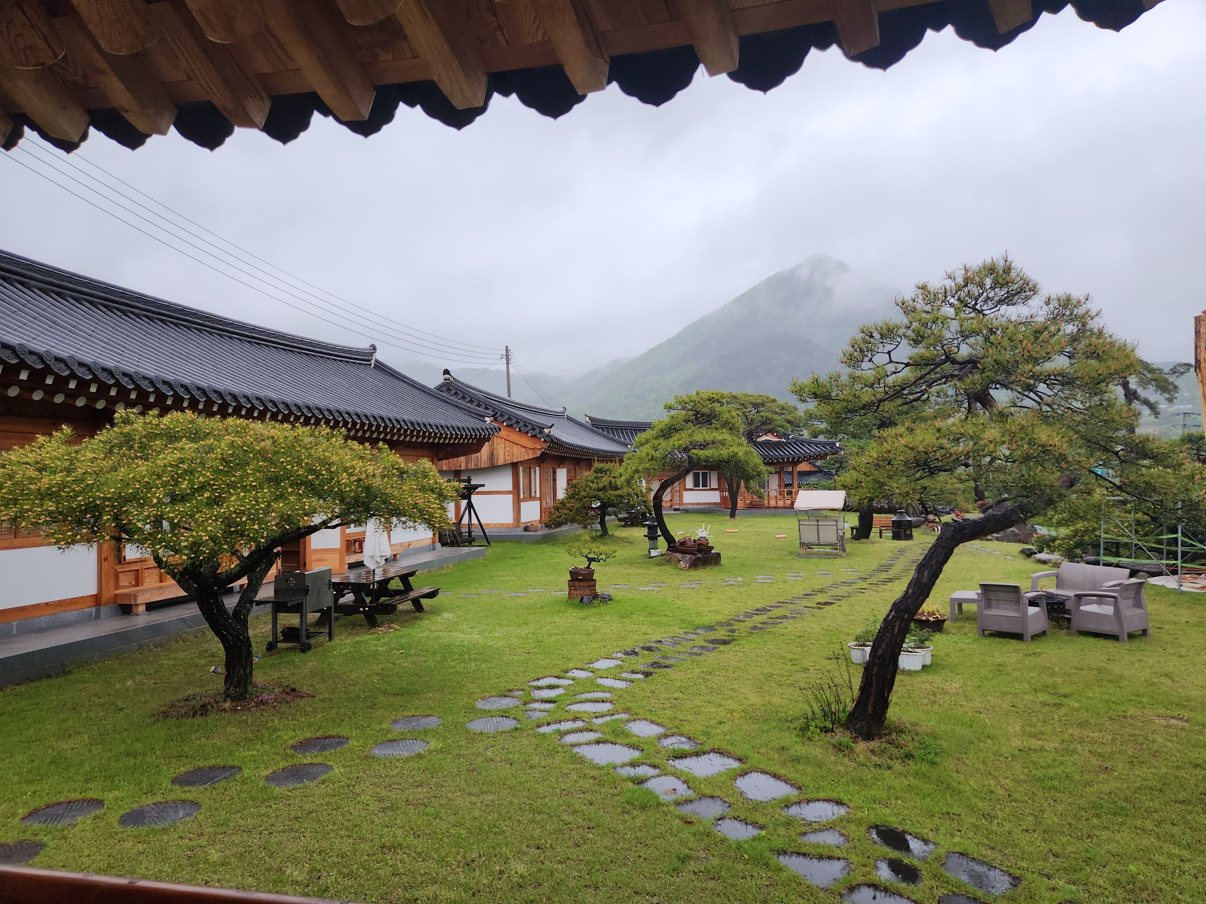 비가 왔는데 처마로 비 떨어지는 서리가 일품입니다