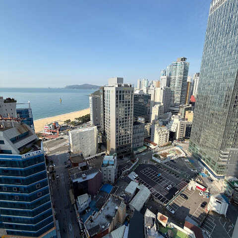 이 호텔은 해운대 해수욕장 바로 앞에 위치해 있어 활기 넘치는 중심지에 머물고 싶은 분들에게 완벽한 선택입니다. 활기 넘치는 이 지역은 상점과 레스토랑들이 밤늦게까지, 심지어 새벽 1시 이후까지 영업하는 경우가 많아 항상 활기가 넘칩니다. 15층 이상 객실에서는 아름다운 해변 전망을 감상할 수 있으며, 특히 발코니가 있는 객실에서는 더욱 그렇습니다. 리셉션은 3층에 있으며 두 호텔이 공동으로 사용하고 있으니 체크인 시 신중하게 확인하시기 바랍니다. 서비스는 훌륭하고, 위치도 편리함과 경치 모두 최고입니다. 부산 여행에 강력 추천합니다.