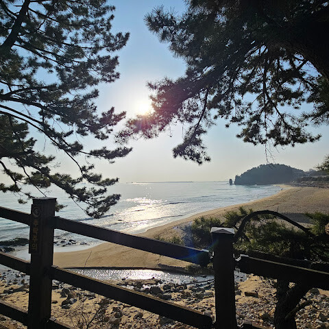 백사장과 몽돌을 같이볼수있고 바위에부딧치는 파도소리 멀리보이는. 화물선 날으는갈매기 너무나 풍경들이좋았다