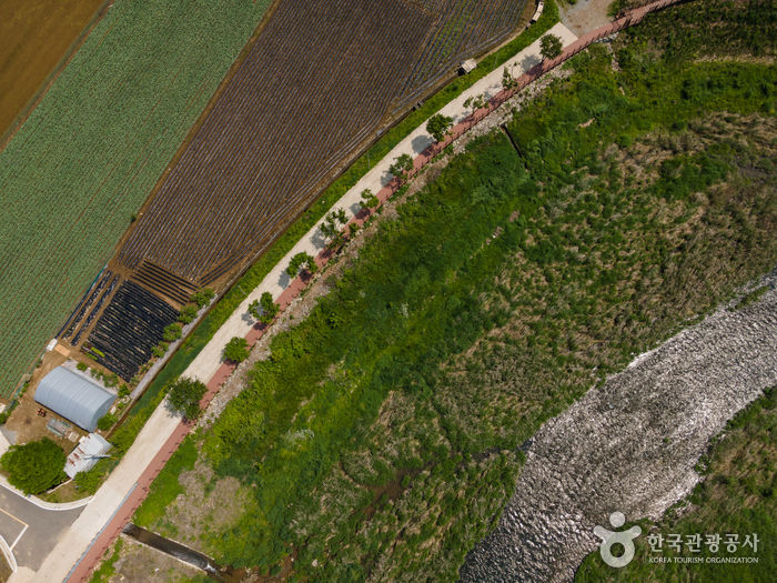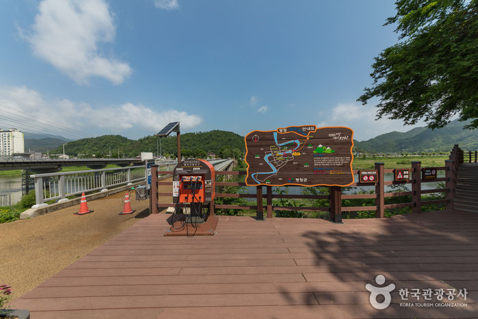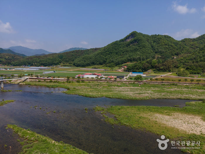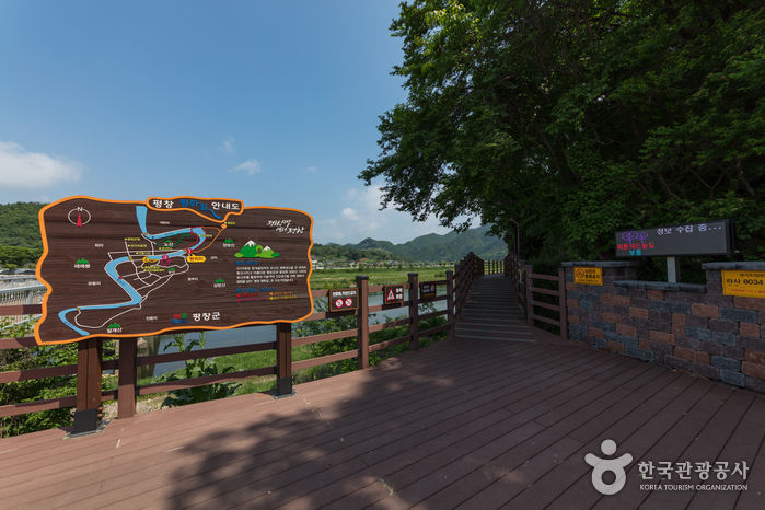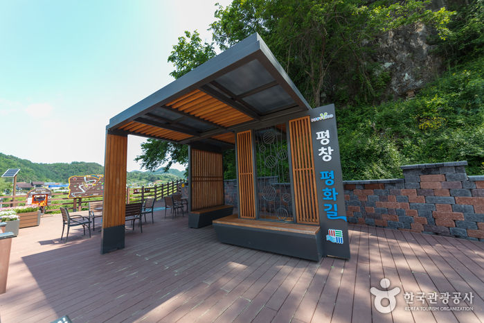 강원도 평창군 장암산 기슭 평창강변에 조성한 걷기 길이다. 평창 평화길은 평창교 구교 근처의 쉼터에서 시작해 여만리와 중리를 연결하는 인도교에서 끝난다. 1.7km의 나무 덱, 두 개의 전망대, 일곱 개의 쉼터를 갖춰 걷기와 풍경 감상, 휴식을 고루 즐길 수 있다. 무엇보다 장애인과 비장애인이 함께 이용할 수 있도록 길의 전 구간을 계단이 없는 나무 덱으로 조성한 점이 돋보인다. 평탄한 나무 덱을 걷는 내내 멀리의 장암산, 가까이의 평창강이 어우러진 수려한 풍경을 볼 수 있다. 강물 안 돌이 훤히 들여다보일 정도로 나무 덱과 강의 위치가 가까운 점도 반갑다. 대부분 구간에서 나무 그늘이 햇볕을 가려주고, 길 중간에 작은 샘터와 하트 모양 포토존이 자리한다. 길의 끝은 평창돌문화체험관 및 바위공원과 연결되어 함께 둘러볼 만하다.