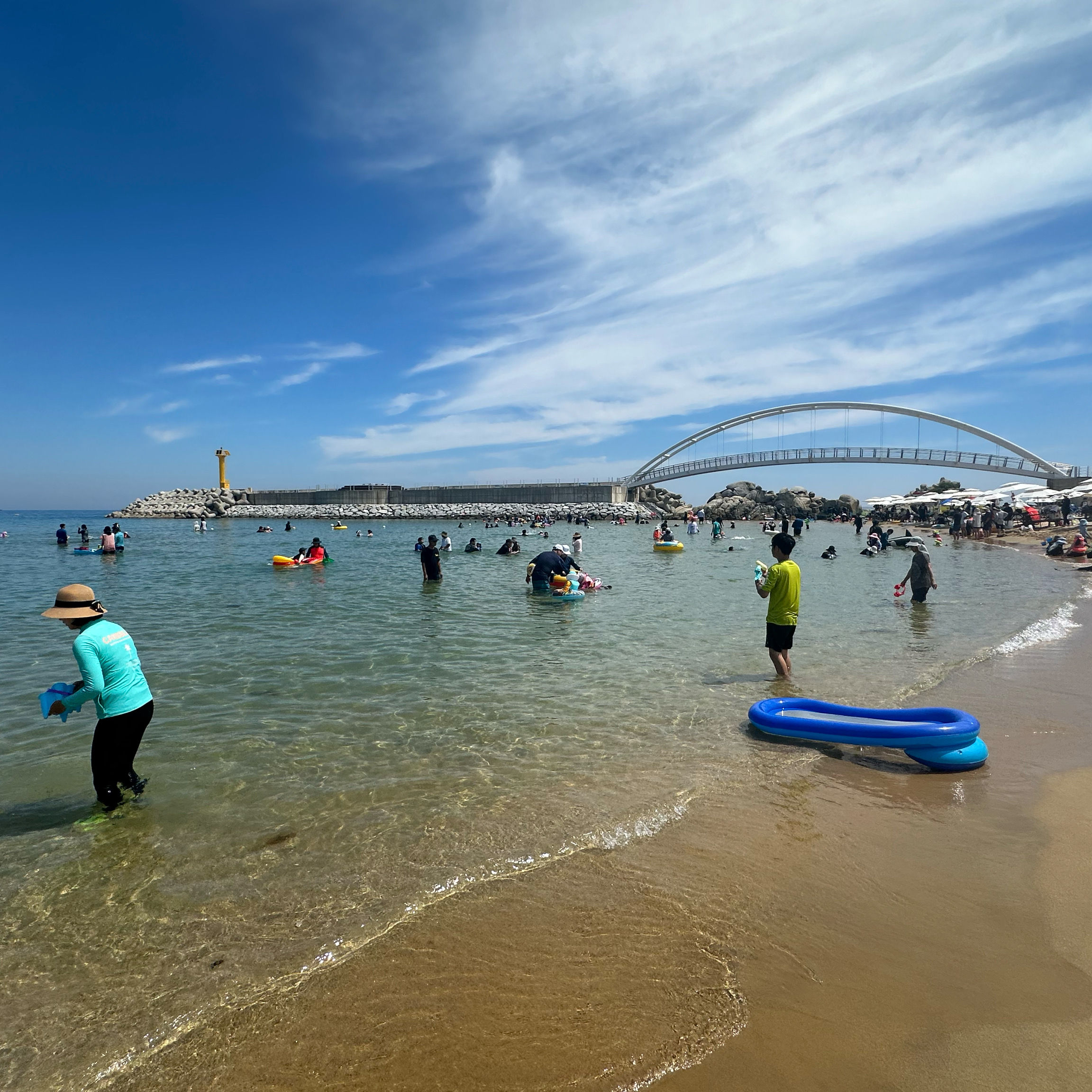 주변에 편의시설 잘 되어있으니 아이와함께 방문하기 좋아요 해수욕장 주변으로 주차는 조금 번잡할 수 있지만 편의점이나 식당 샤워실 이용할 수 있는곳 여기 저기 많이 있으니 편하게 이용할 수 있어요 모래사장에 모래 곱고 바다 수심도 많이 깊지 않은 편이라 아이와함께 방문하기 좋은 곳입니다.
