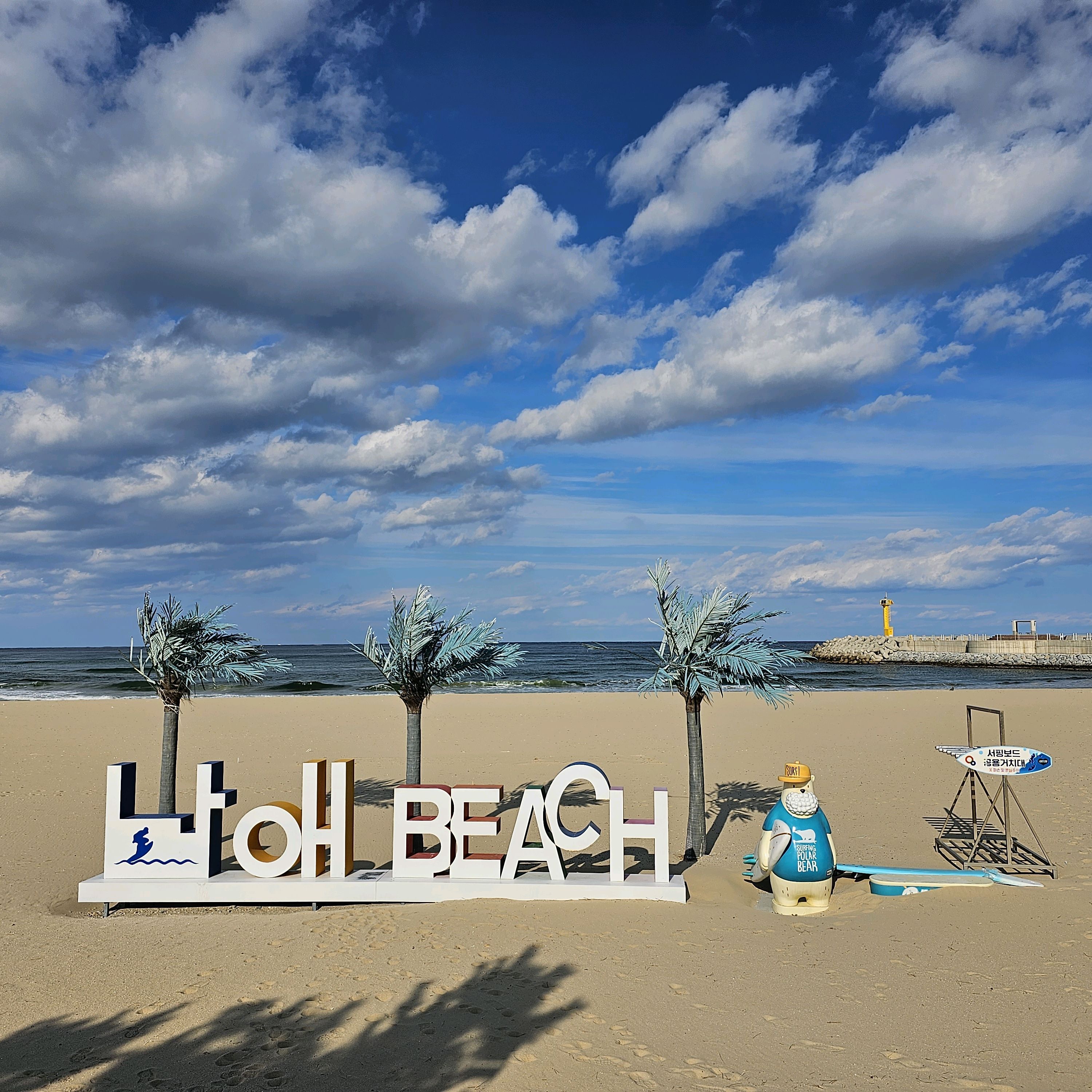 양양의 바닷가가 대부분 그렇지만 여긴 좀 더 서퍼들에게 특화된 바다 느낌입니다. 조형물 자체도 서핑과 관련되어있는 것들이 세워져있네요.