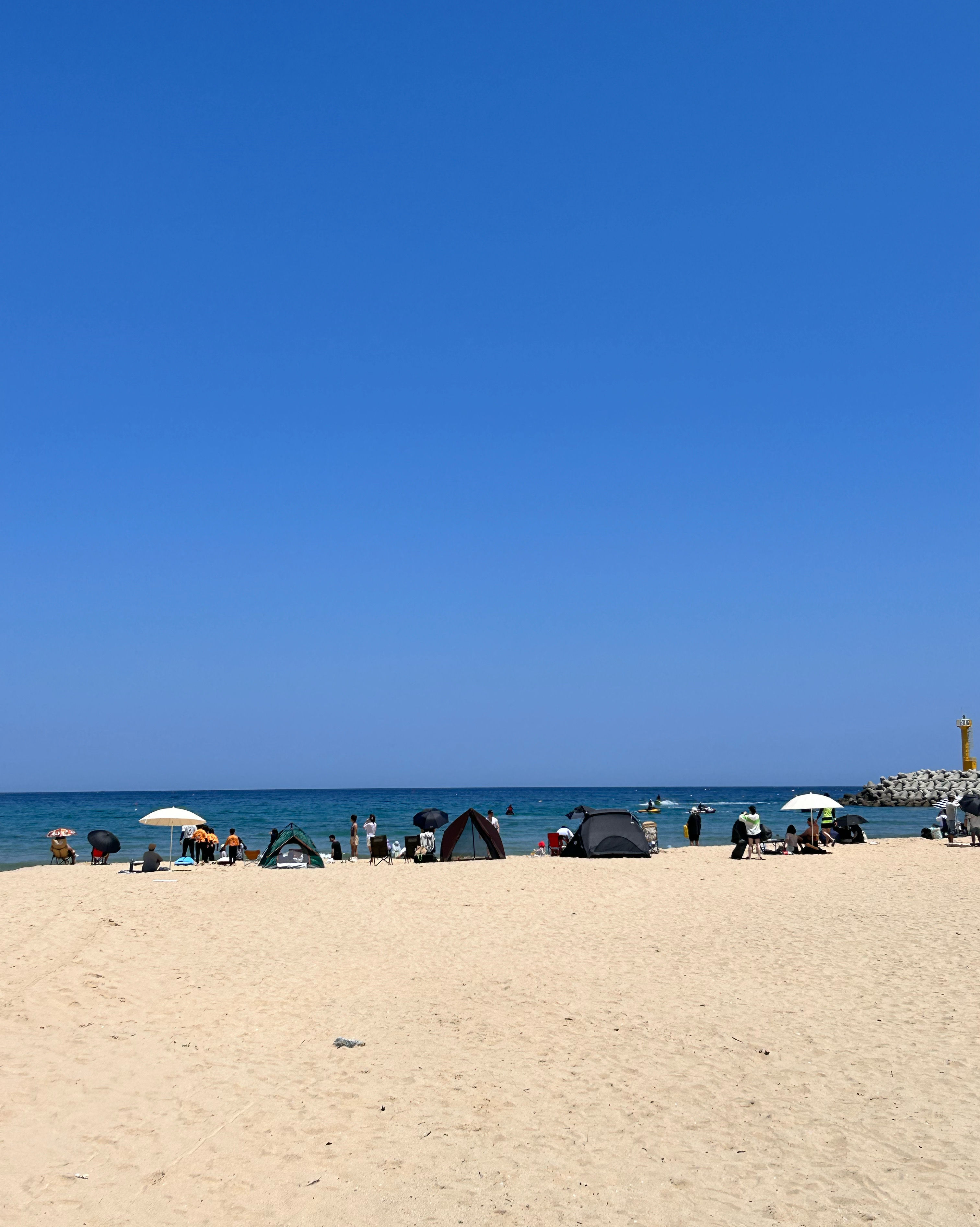 다른 해변가나 해수욕장에 비해서 규모는 상대적으로 그렇게 큰 편은 아닌 것 같지만 그래서 사람이 많아 붐벼서 정신없는 느낌이 아니라서 오히려 더 좋은 것 같습니다. 그만큼 바닷물도 맑고 깨끗한 것 같구요.