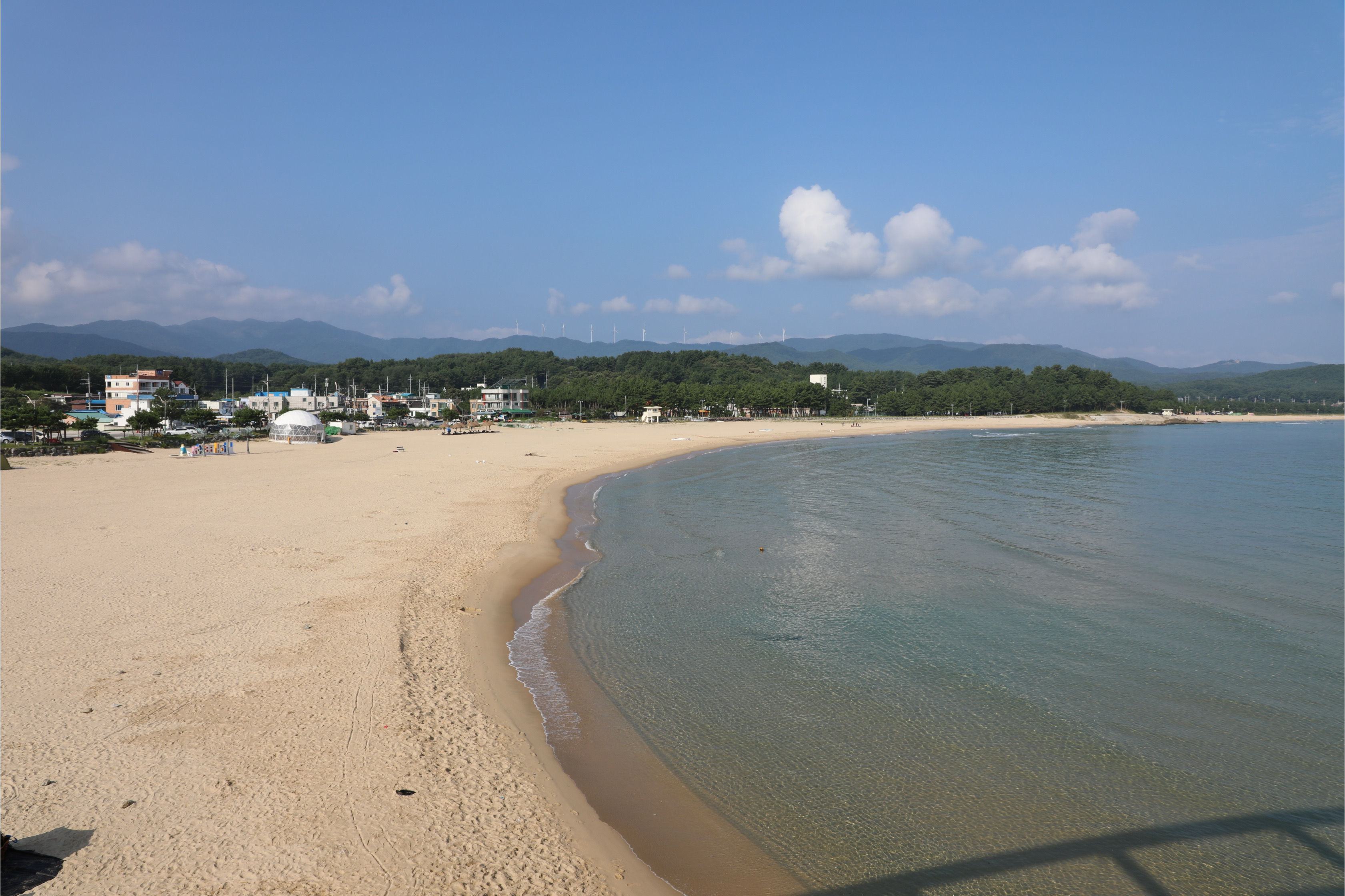 깨끗한 백사장과 수심이 얕고 경사가 완만하여 가족 단위의 피서지로 적합하다.