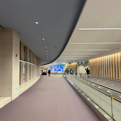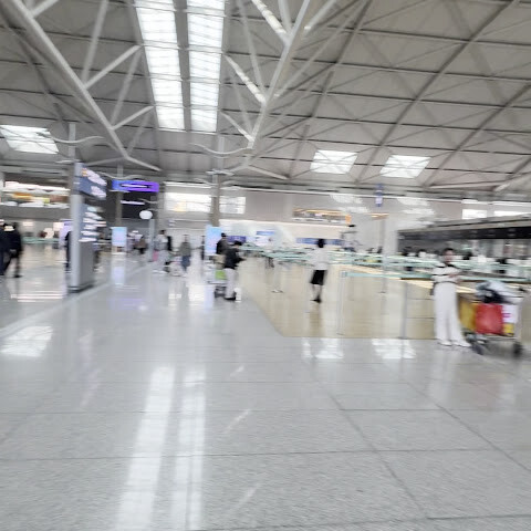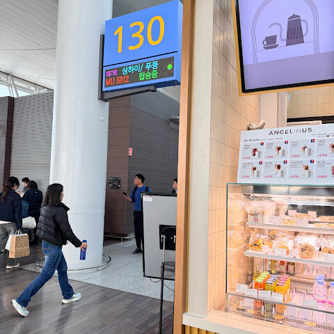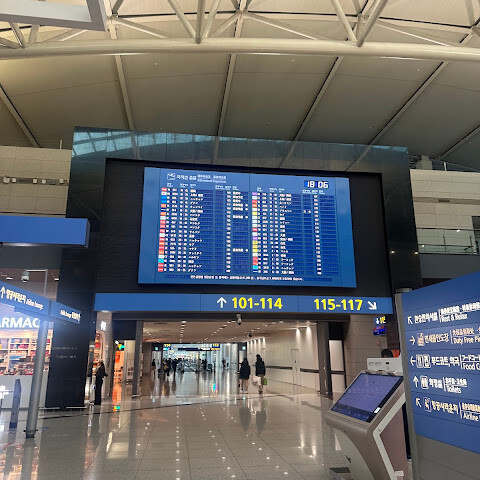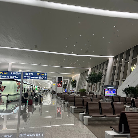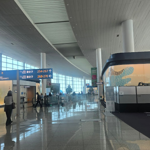 공항이 정말 잘 정돈되어 있었어요. 모든 게 빠르고 순조롭게, 아무 문제 없이 진행됐습니다. 게이트가 대부분 가로로 길게 배치되어 있어서 거리가 꽤 멀긴 했지만요. 개선될 수 있는 한 가지 아쉬운 점은 한국 전통 과자나 간식, 음료를 파는 편의점이 더 많았으면 좋겠다는 거예요. 공항에서 그런 걸 사려고 했는데, 1번 터미널에는 마음에 드는 게 없었거든요.