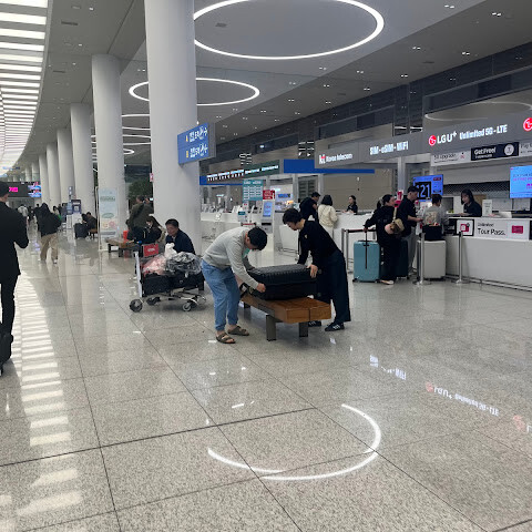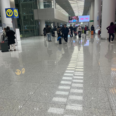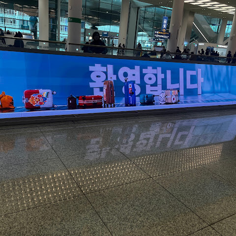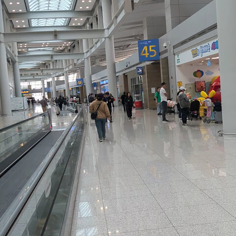공항이 정말 잘 정돈되어 있었어요. 모든 게 빠르고 순조롭게, 아무 문제 없이 진행됐습니다. 게이트가 대부분 가로로 길게 배치되어 있어서 거리가 꽤 멀긴 했지만요. 개선될 수 있는 한 가지 아쉬운 점은 한국 전통 과자, 간식, 음료 등을 파는 편의점이 더 많았으면 좋겠다는 거예요. 공항에서 그런 걸 사려고 했는데, 1번 터미널에는 마음에 드는 게 없었거든요.