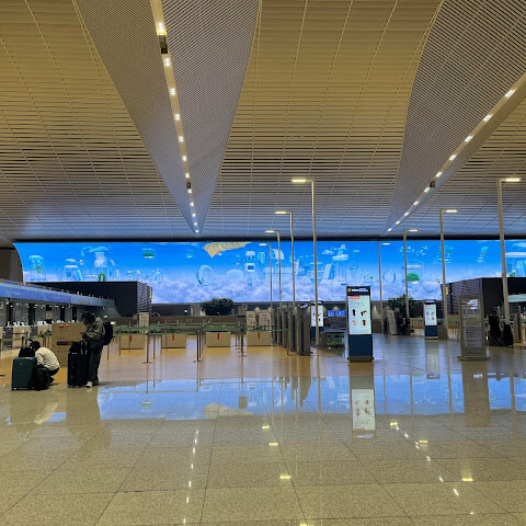 정말 크고 아름다운 공항이었어요. 최첨단 장비와 서비스로 매우 잘 정돈되어 있었고, 특히 자동 수하물 무게 및 크기 측정기는 정말 놀라웠습니다. 모든 셀프 서비스 키오스크는 사용하기 매우 편리했고, 모든 기계에 영어 설정이 되어 있었어요. 셀프 체크인 키오스크는 정말 최고였습니다. 정말 만족스러웠어요.