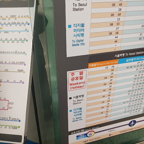 💡 여행 팁: 한국에서는 구글 지도의 교통 정보가 지연될 수 있으므로, 네이버 지도나 카카오 지도를 이용하여 공항철도(AREX)나 서울행 리무진버스의 실시간 시간표를 확인하세요.