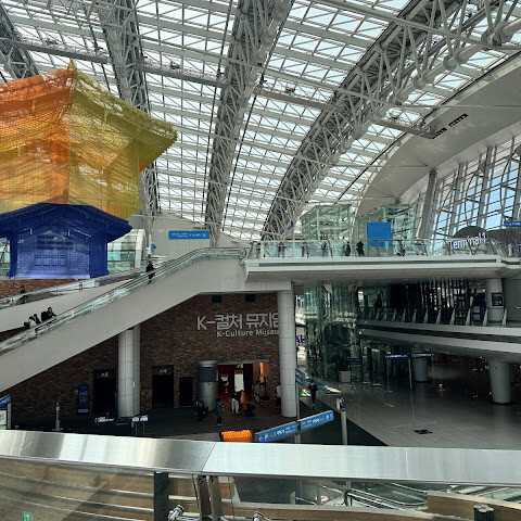 공항은 정말 깨끗하고 정돈되어 있어요. 하지만 아티스트들이 오면 팬들이 엄청 붐비죠. 제가 비행기를 타려고 할 때 경험한 건 만족스러웠는데, 알고 보니 케이팝 아이돌 중 한 명과 일정이 똑같았어요.