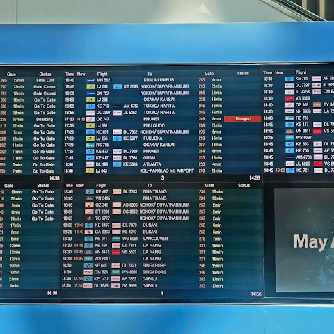결론적으로, 시간이 촉박하지 않다면 인천공항에는 3~4시간 전에 도착하는 것을 강력 추천합니다. 공항은 관광지처럼 둘러볼 만한 곳이에요. 싱가포르 창이공항과도 어느 정도 비슷한 분위기입니다. 비록 오래 머물지는 않았지만, 벌써 다음 서울행 비행기가 기대되네요.