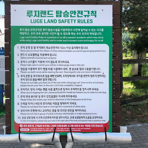 비교하긴 그렇지만... 강화 루지에 비하면 좀 별로인듯 싶네요... 스키장이라서 그런지 몰라도 곤돌라가 아닌 리프트로 올라가야 하며, 코스가 다소 밋밋합니다. 와이프 말로는 스피드 구간처럼 직선 코스가 없고 별로 맘에 안든다고 하네요. 직원 분들은 친절합니다!