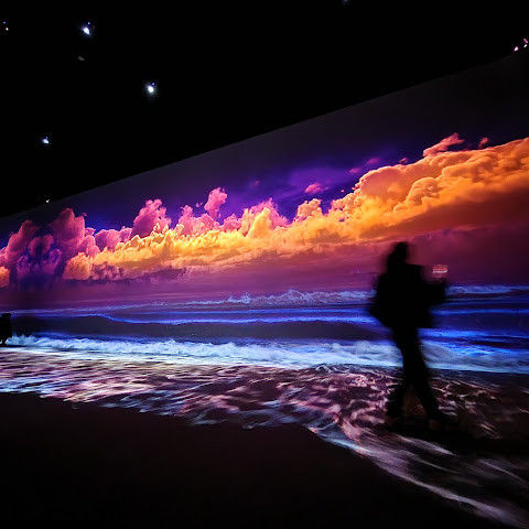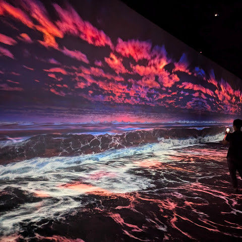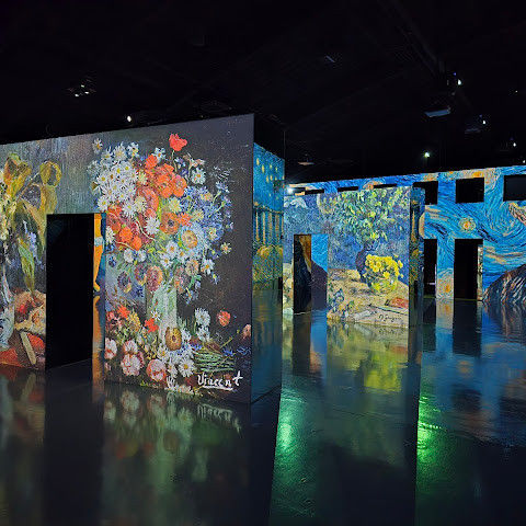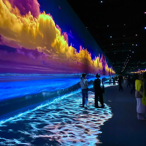 강력 추천합니다! 프로젝터를 통해 작품이 벽면에 투사됩니다. 총 10개의 전시/작품과 아트 카페(추천!), 그리고 아트 숍도 있습니다.