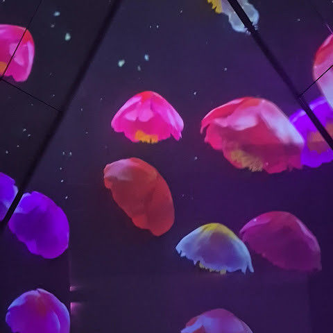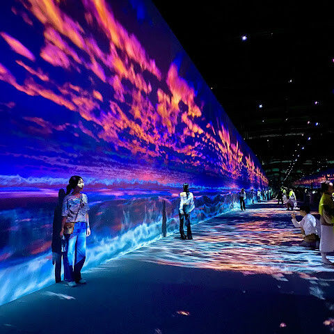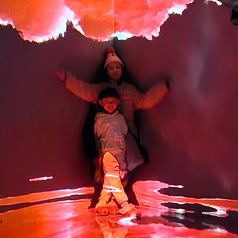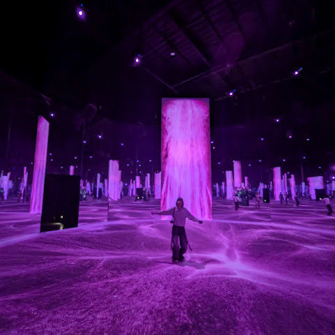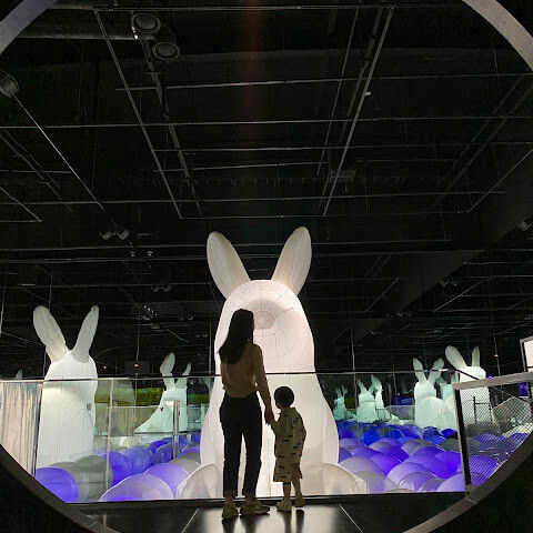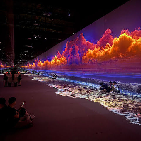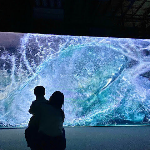 구름과 파도가 끝없이 펼쳐지는 프로젝션 공간이 있는 '클라우드 & 웨이브스' 공간이 정말 마음에 들어요. 발밑의 프로젝션이 움직이면서 마치 물 위를 걷는 듯한 느낌을 주죠. 아이들은 떠나고 싶어 하지 않아요😊