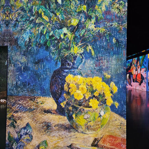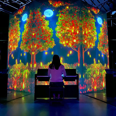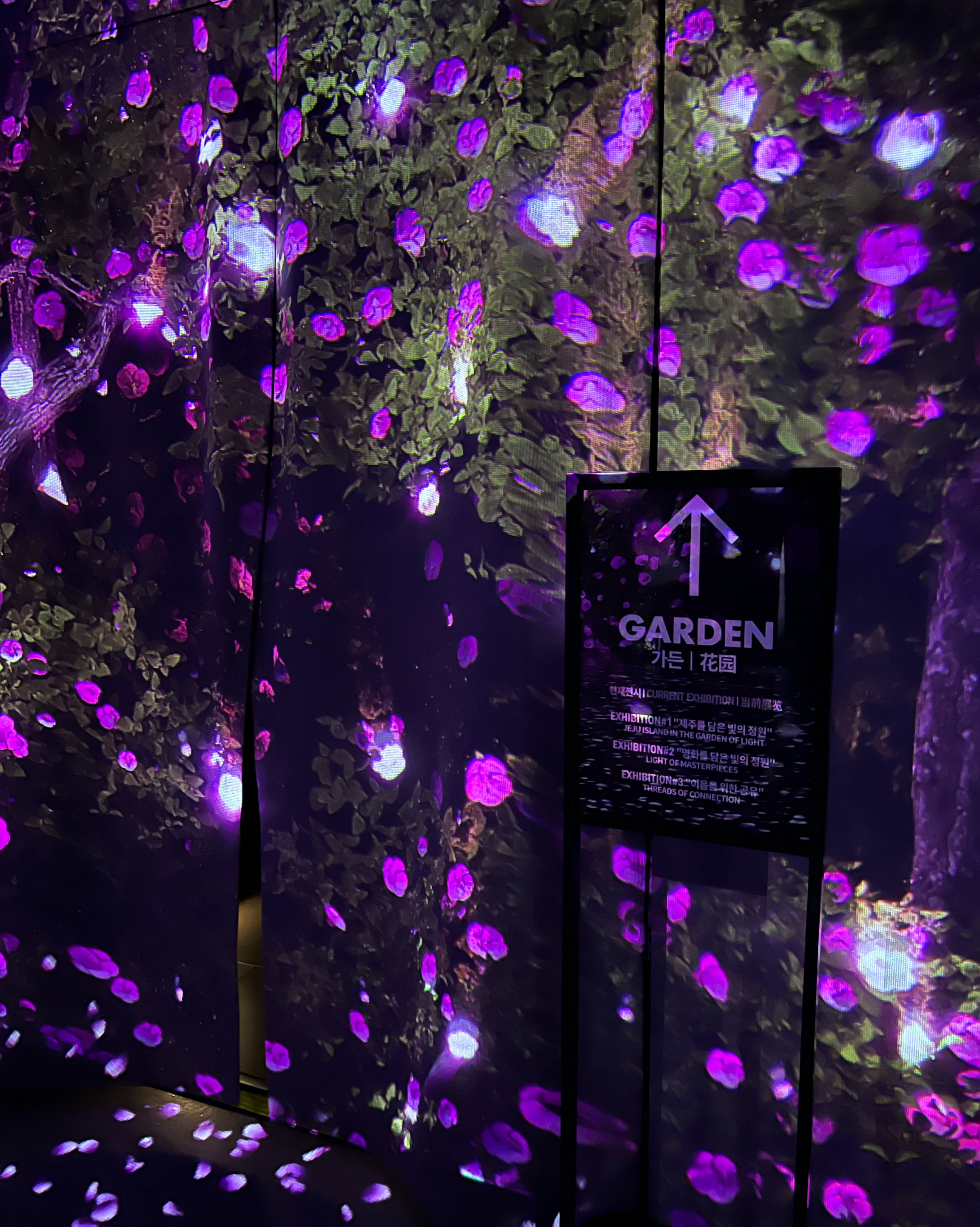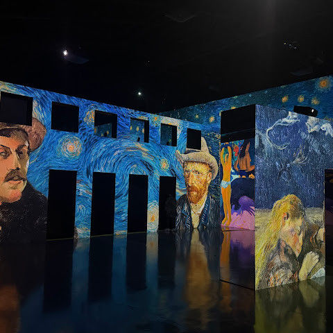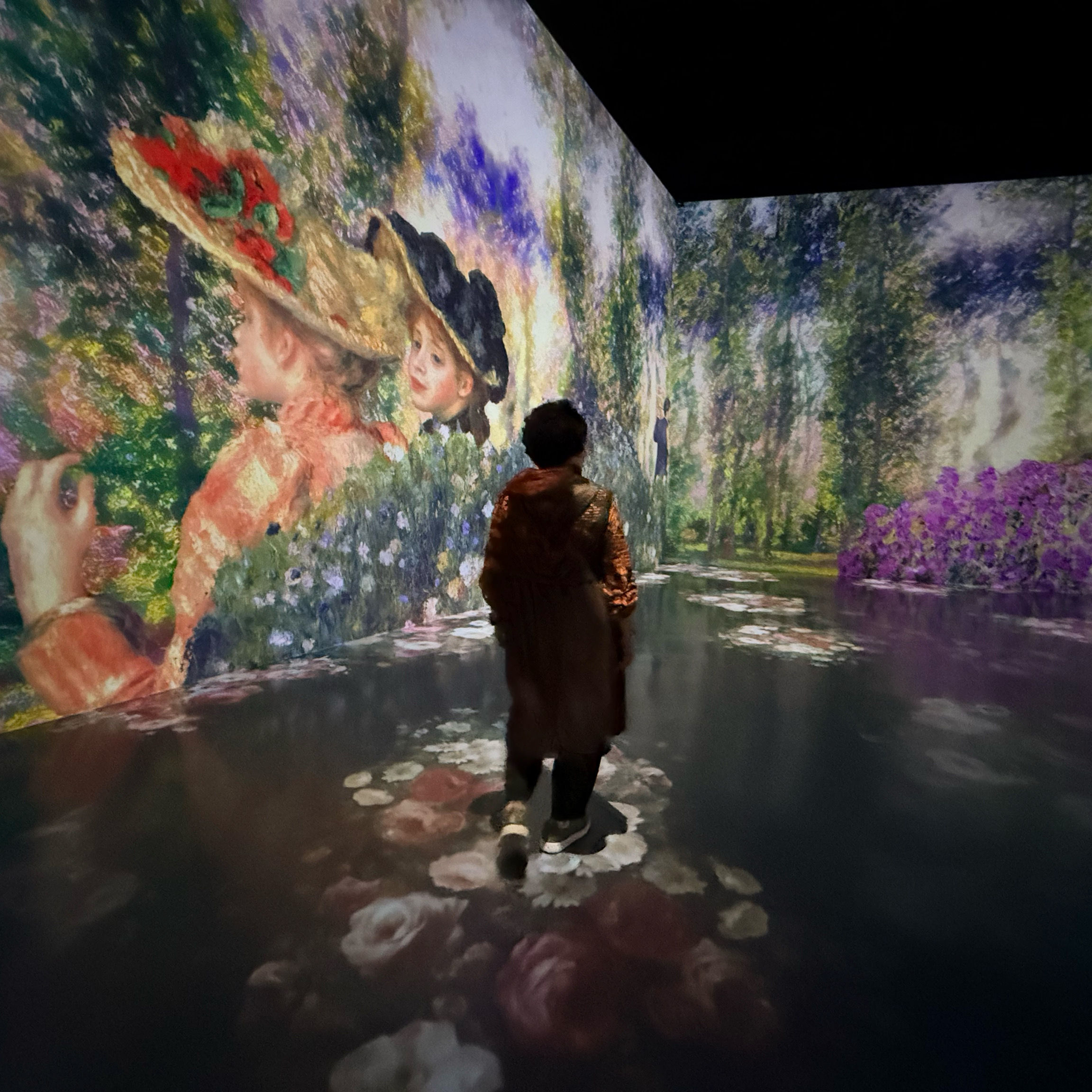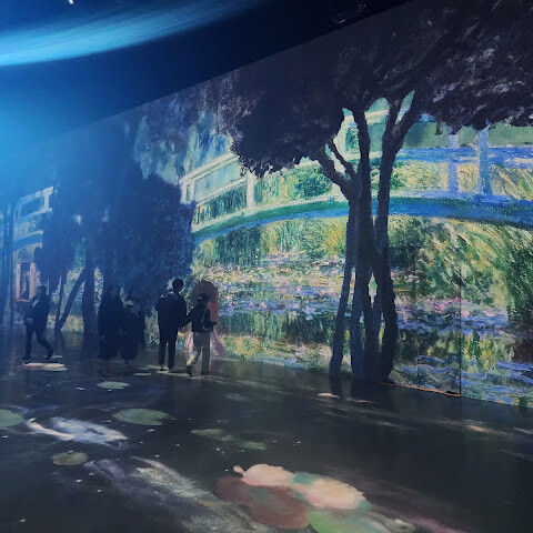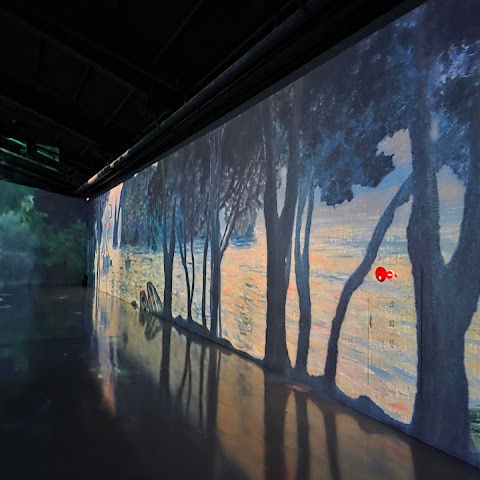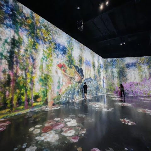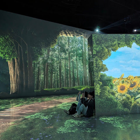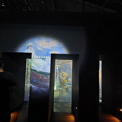 가장 오래 머물렀던 곳은 '명작의 빛 정원'이었어요. 이 예술 궁전은 반 고흐의 "해바라기"와 "별이 빛나는 밤", 모네의 수련, 르누아르의 부드러운 그림, 클림트의 찬란한 금빛이 역동적인 프로젝션을 통해 눈앞에 펼쳐져요. 마치 명화의 세계로 걸어 들어간 듯한 기분이에요. 그림은 음악에 맞춰 흐르고, 예술의 역동적인 아름다움에 매료되죠.