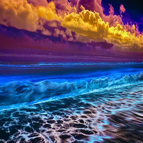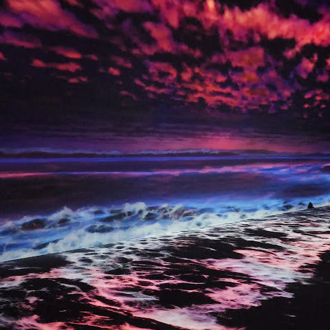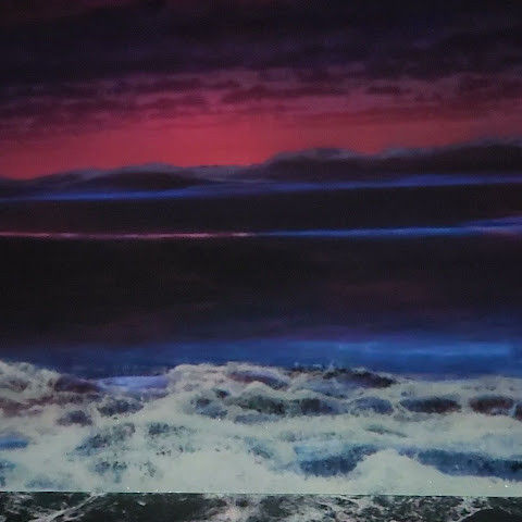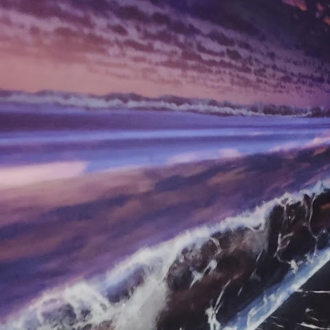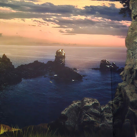 제주의 석양과 파도를 사실적으로 표현해두었어용