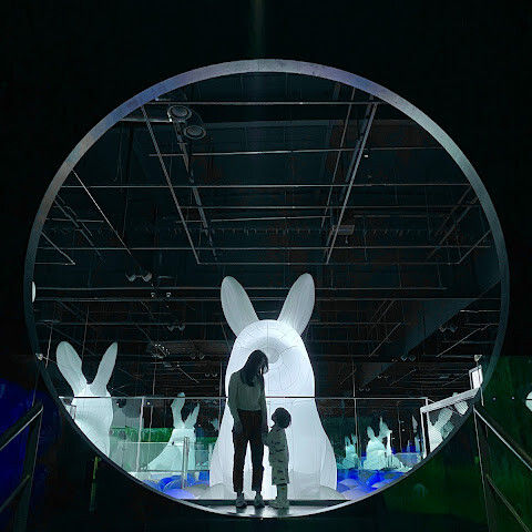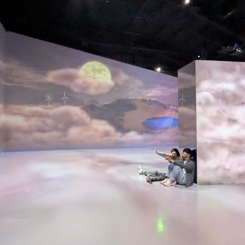 구름과 파도가 끝없이 펼쳐지는 프로젝션 공간이 있는 '클라우드 & 웨이브스' 공간이 정말 마음에 들어요. 발밑의 프로젝션이 움직이면서 마치 물 위를 걷는 듯한 느낌을 선사해요. 아이들은 떠나고 싶어 하지 않더라고요😊