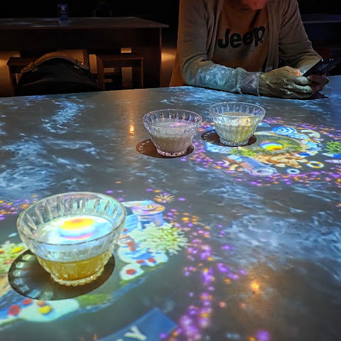 다른 도시에서 비슷한 곳을 가본 사람이라면 딱히 새로울 건 없지만, Trip에서 음료 콤보 티켓을 구매하면 카페에서 인터랙티브 디지털 아트를 감상할 수 있다는 점도 좋았어요!