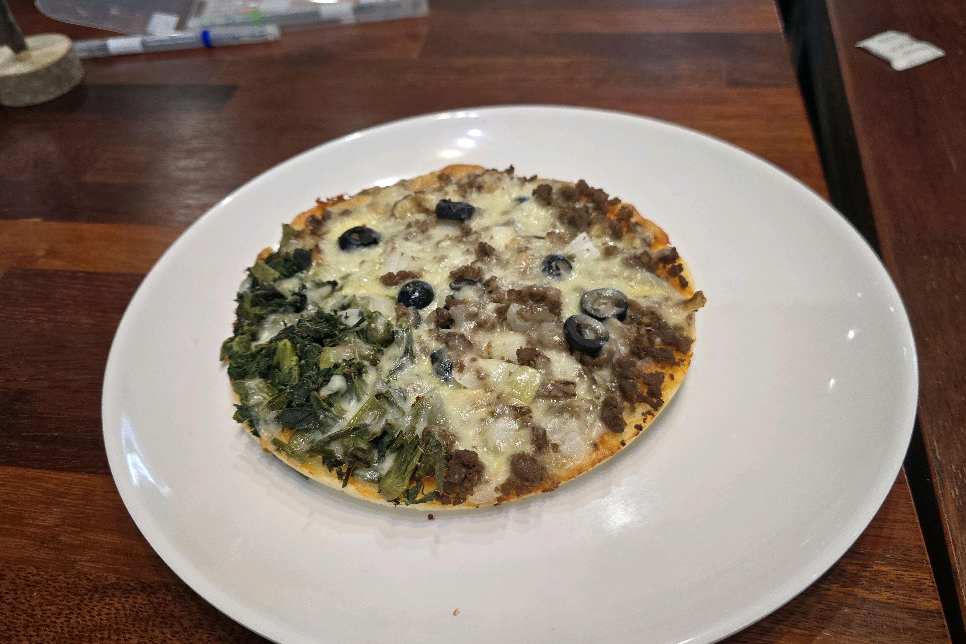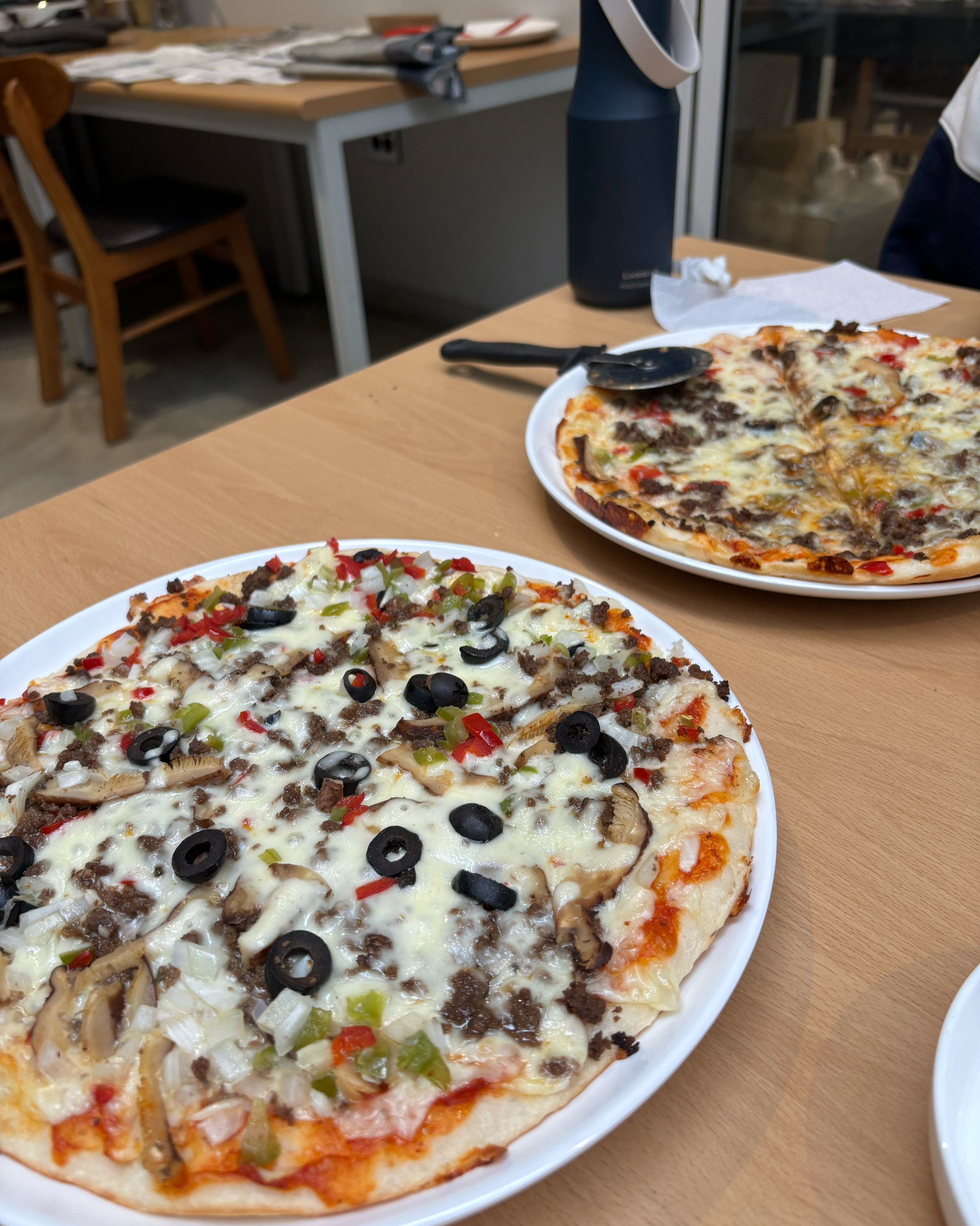 피자에 고기 한우로 직접 볶으시고, 버섯도 다 준비해주셔서 특색이있네요.