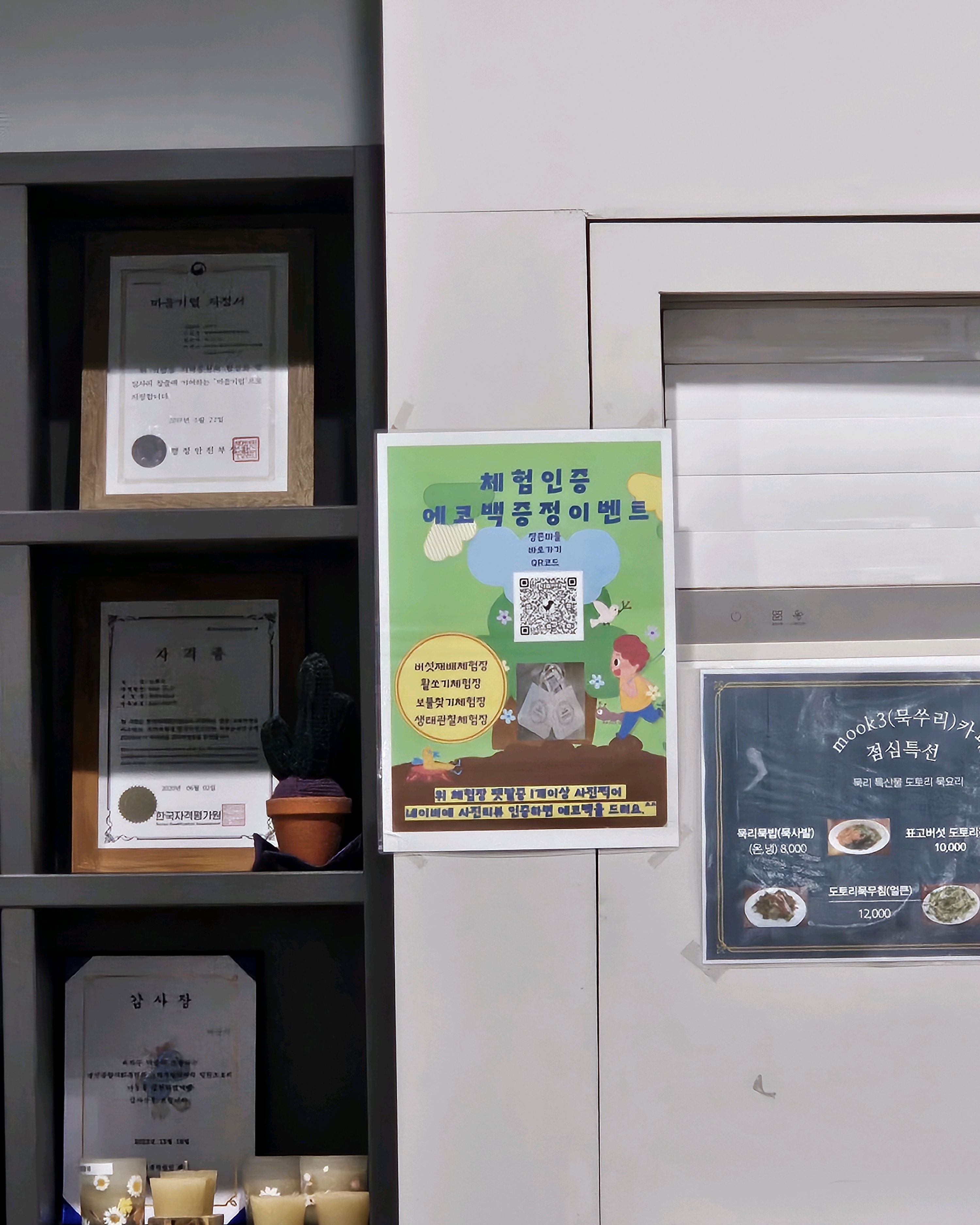아이와 함께 피자만들기체험 신청하고 왔는데 고추장까지 만들었어요 피자가 시중에서 사는 것과는 비교할 수 없게 맛있었고 여기서 먹은 묵밥도 환상입니다