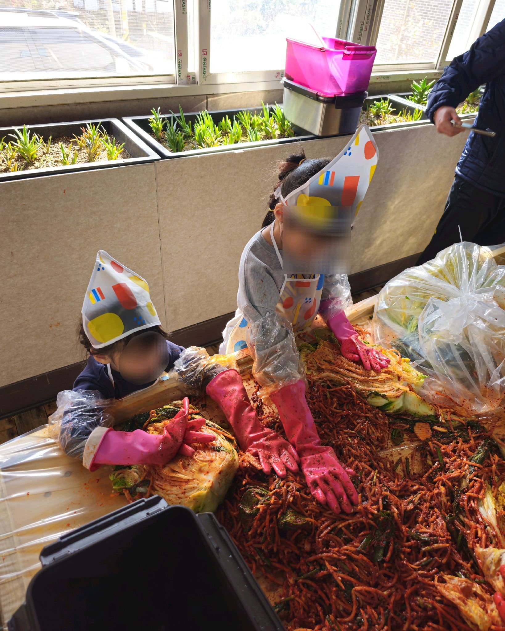 아이들과 김장 해보고 싶었는데 장촌마을 덕분에 편하고 즐겁게 잘 했어요. 안매운 고춧가루도 가져 가서 아이들꺼도 만들었더니 김치 안먹던 아이가 너무 잘 먹어요!