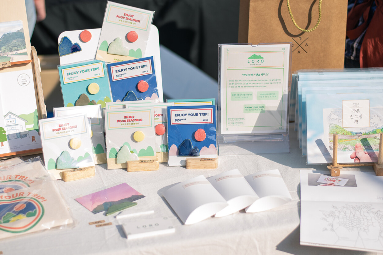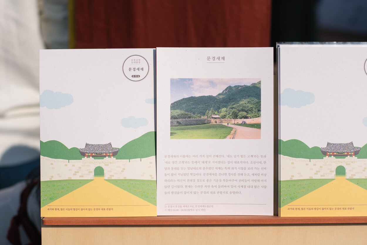 * 상품명 : 문경새재 키링 (9,000원) 문경새재의 감성을 담은 새재의 낮, 밤, 봄 열쇠고리 싱그러운 낮, 고요한 밤, 화려한 봄의 모습을 담아 예쁜 키링으로 제작하여 열쇠고리, 에어팟 고리, 백팩 고리, 지갑이나 자동차 키 고리 등 다양한 활용 가능 * 상품명 : 문경새재 도자 마그넷 (8,000원) 새재의 낮과 밤, 그리고 봄의 아름다운 산세와 색을 입은 도자기 마그넷 낮의 산뜻함과 밤의 고즈넉함 그리고 특별히 봄의 화사함까지 담아 산과 흙과 물이 좋은 문경의 사계절을 느낄 수 있다. * 상품명 : 마을매거진엽서 (1,000원) 사진, 인터뷰와 일러스트가 있는 낱장 엽서 형태의 마을 매거진 가은성당, 가은역, 궁전미용실, 문경새재, 보건약국, 욱일주유소, 호돌이 문방구 등 30년 이상 그 자리를 지켜온 공간과 사람의 이야기를 소개한다. |