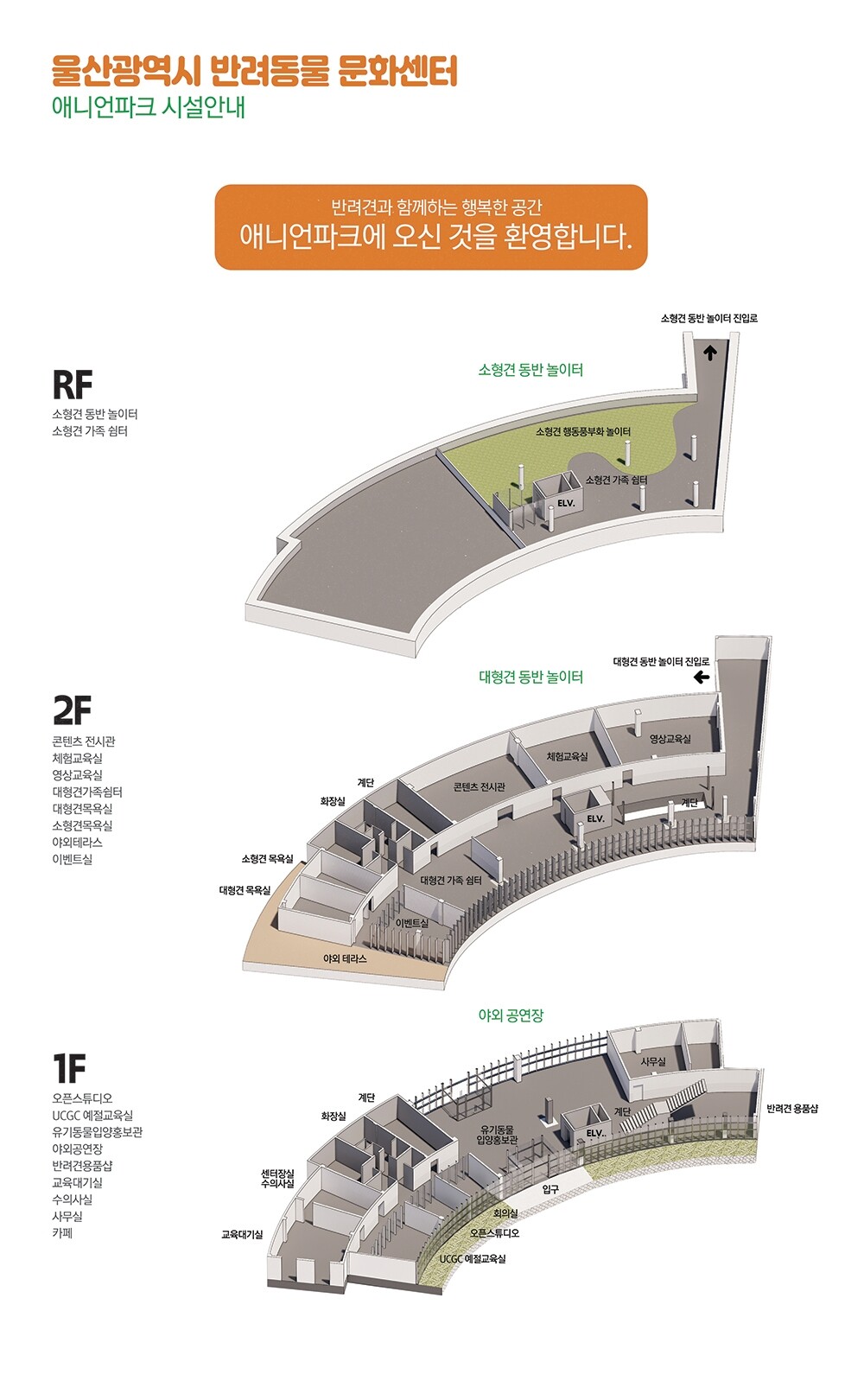 동남권 최초의 반려동물 문화센터로 소형견과 대형견으로 구분된 반려견 운동장과 물놀이장(하절기 개장), 목욕실(드라이룸, 수건 구비) 등 다양한 시설을 갖추고 있다. 그리고, 반려동물과 사람이 함께 살아가는데 필요한 예절교육 프로그램이 있으며 반려동물 관련 자격증 취득(훈련사, 미용사, 펫시터)을 위한 교육프로그램, 비반려인도 참여 가능한 체험교육 등 진행하고 있다.