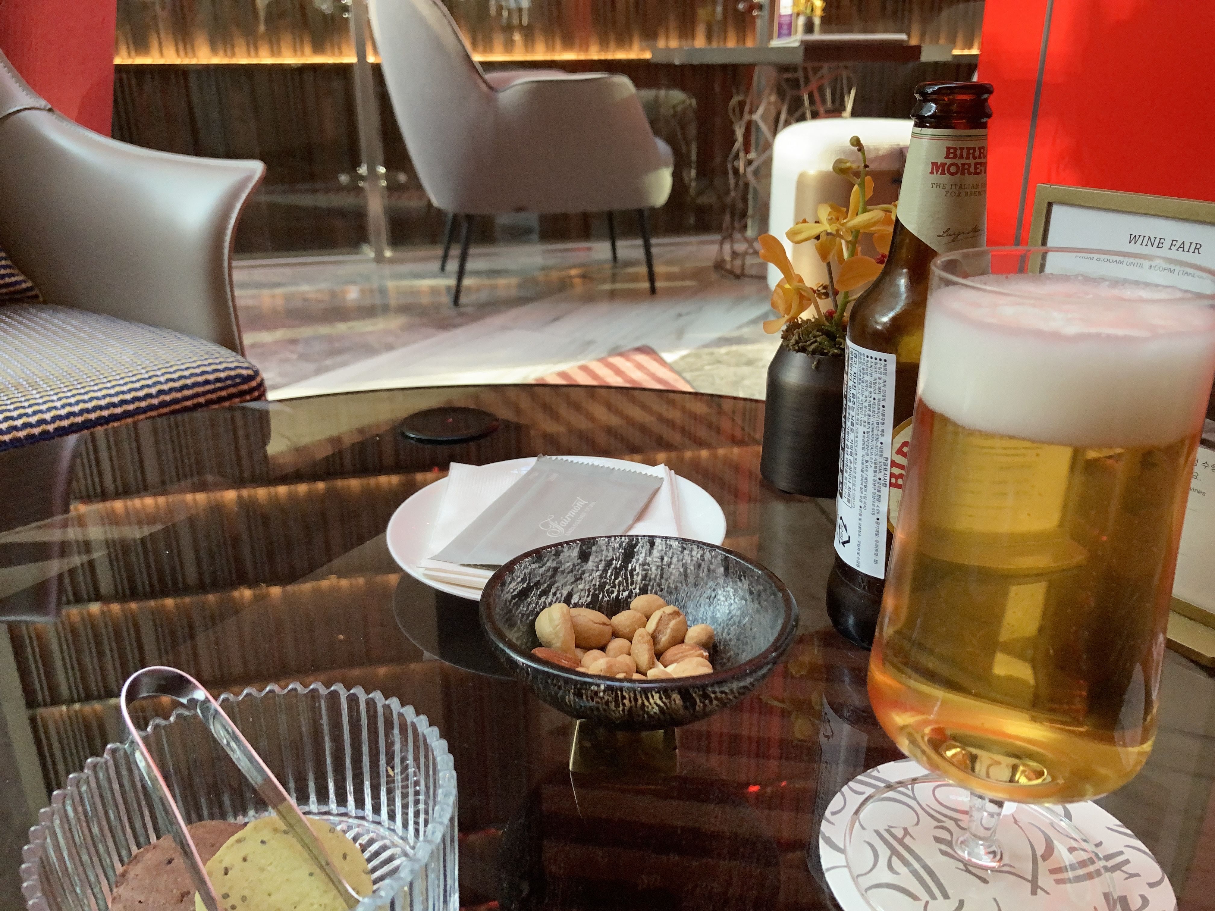 골드룸에서 1박을 해서 수영장(1박당 1회), 사우나(하루1회씩 가능), 해피아워, 애프터눈티, 조식 모두 포함이에요! 라운지가 3층이라 조금 갑갑한 느낌이 있긴 했는데 워낙 층고가 높고 세련된 인테리어와 감각적인 디자인에 호텔에서 볼거리가 참 많았어요!!