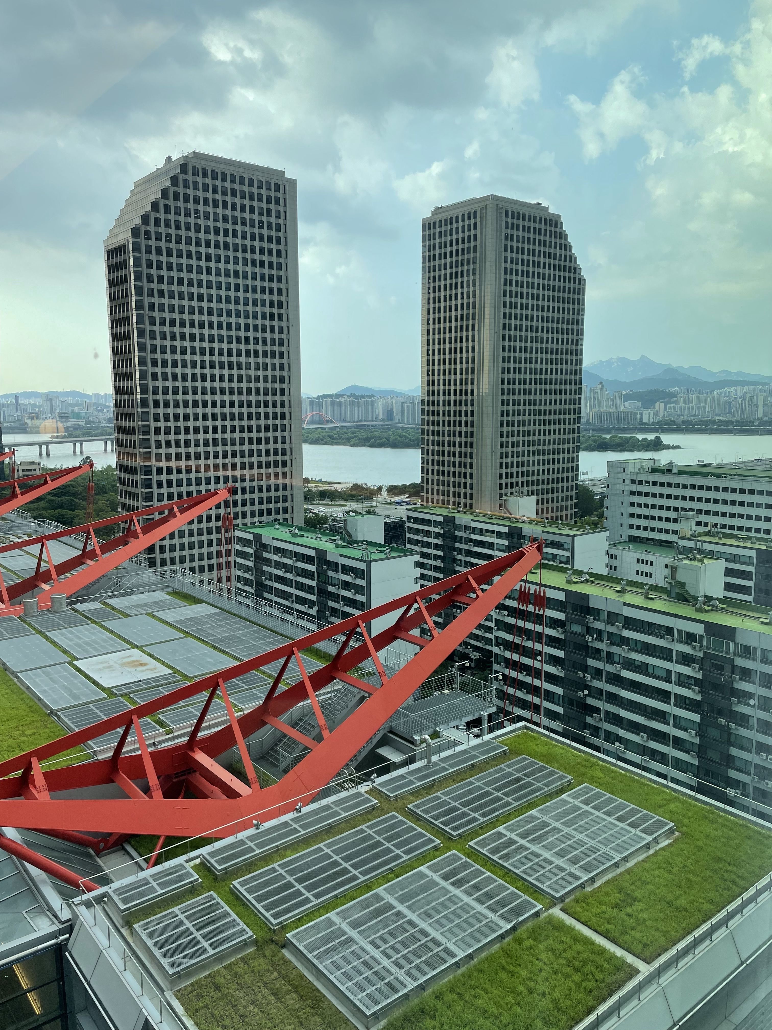 객실이 편함!,한강뷰가 멋집,더현데 서울과 연결되어서 여름,겨울에도 덥지,춥지 않게 들어갈수 있다,빌딩 사이에 이어서 층은 낮지만 느낌 있음 ,아쉬운점: 화장실 문이 변기있는 곳과 샤워기가 있는 곳 문이 같아서 동시에 할수 없음 그래도 다른건 별5개