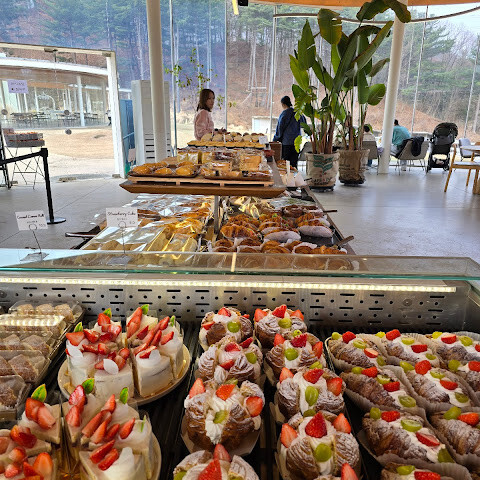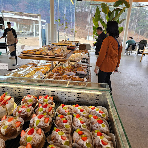 빵집 분위기도 좋고 커피도 맛있어요. 다만 11,000원으로 가격이 좀 비싼 편이에요. 저는 몽블랑 빵을 먹었는데, 달콤한 마늘 향이 나면서도 아주 신선하고 의외로 맛있었어요. 알파카들도 귀여웠어요.