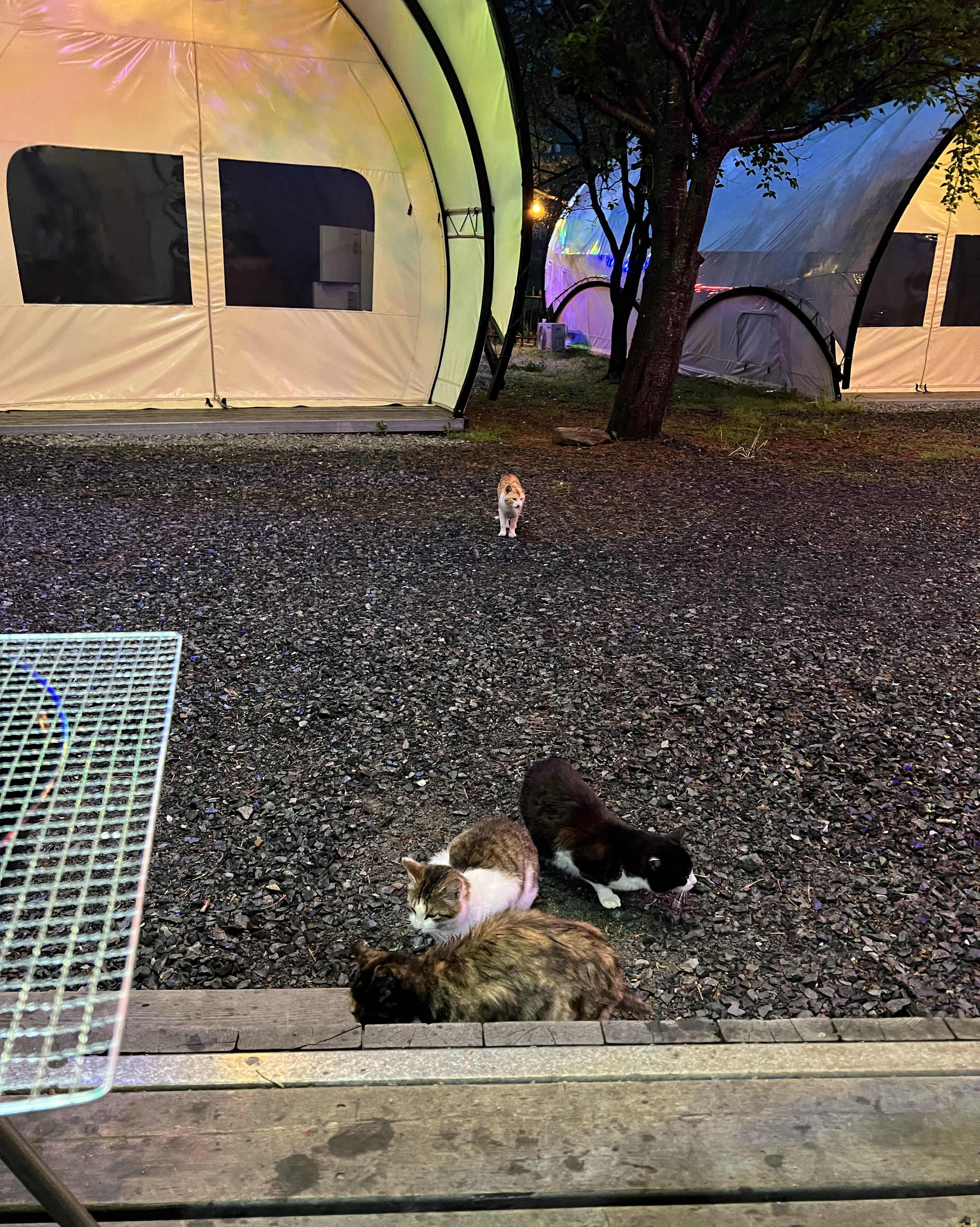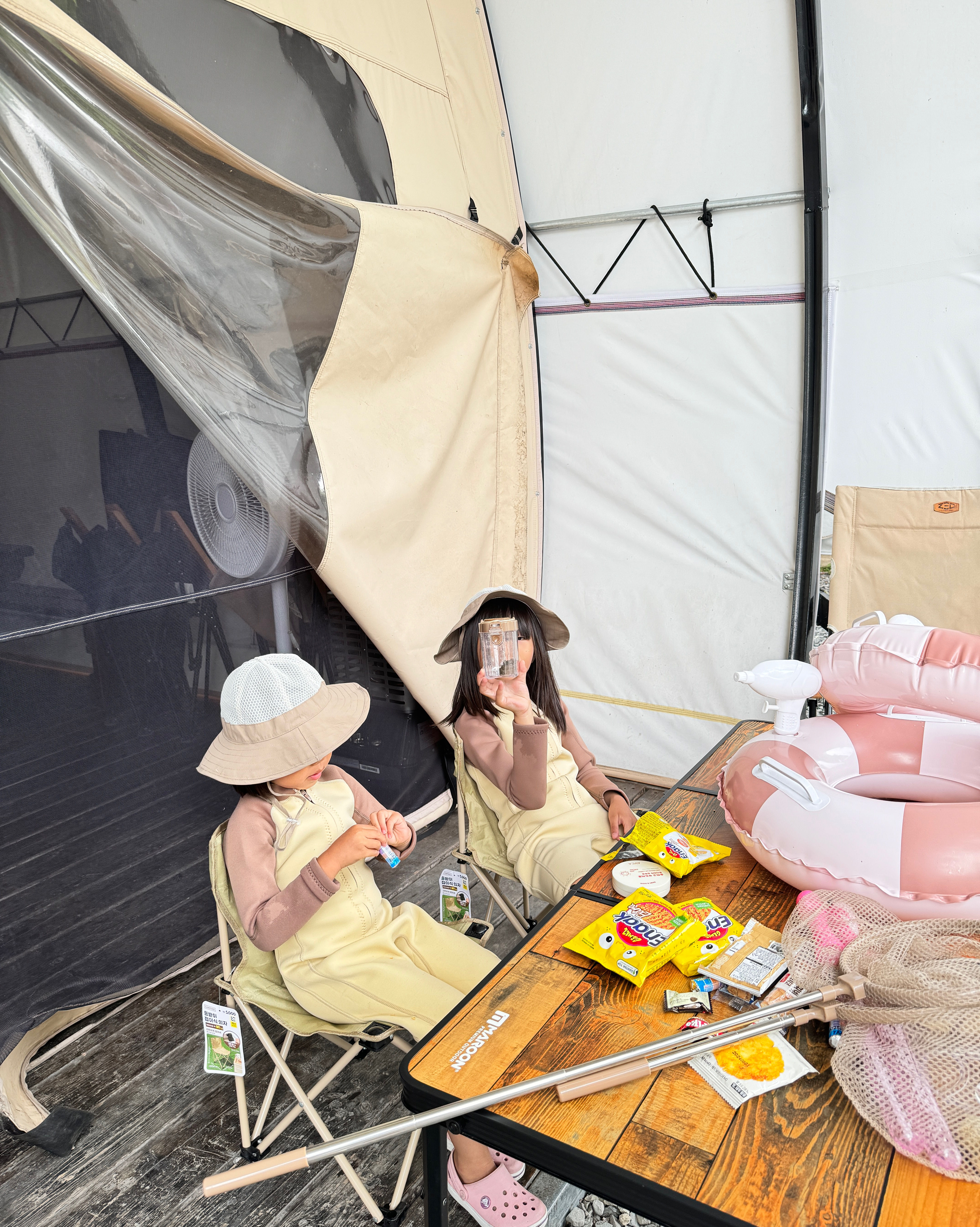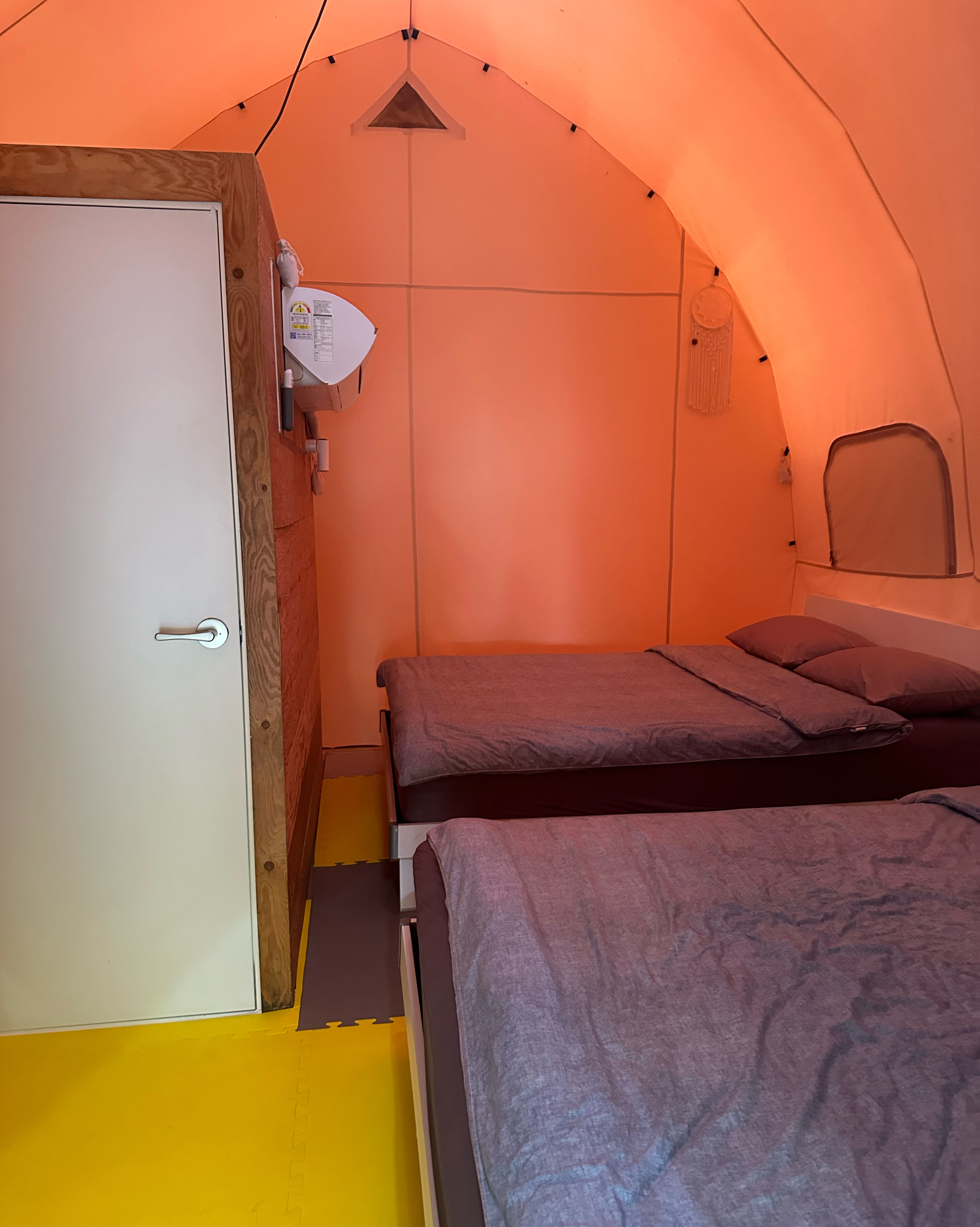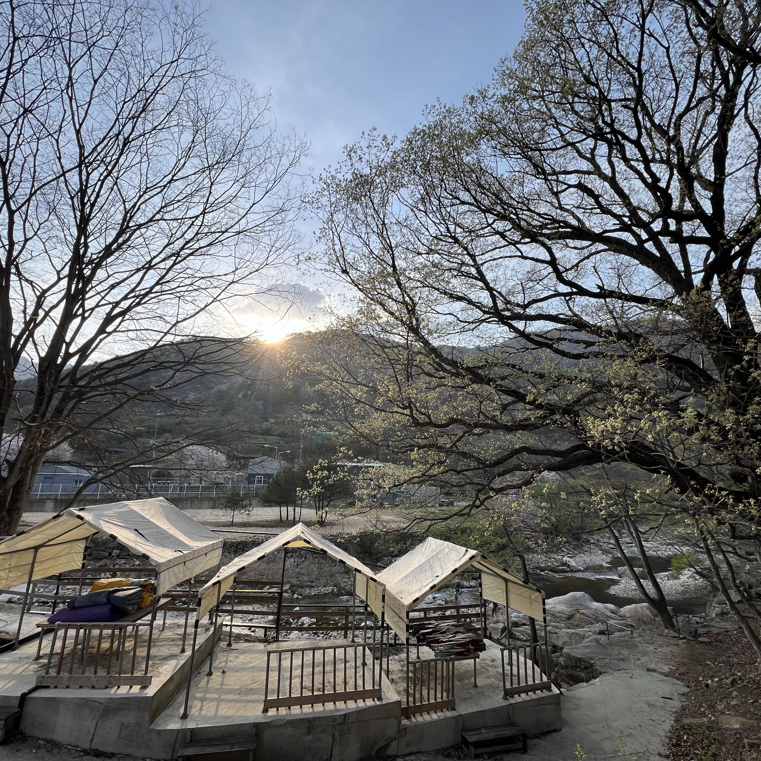 금요일은 사람이 거의 없아서 조용했고, 토요일은 글램핑과 캠핑 사이트가 다 차서 사람이 많았어요. 그래도 10시? 11시 이후로는 다들 조용하다라구요. 👍🏻