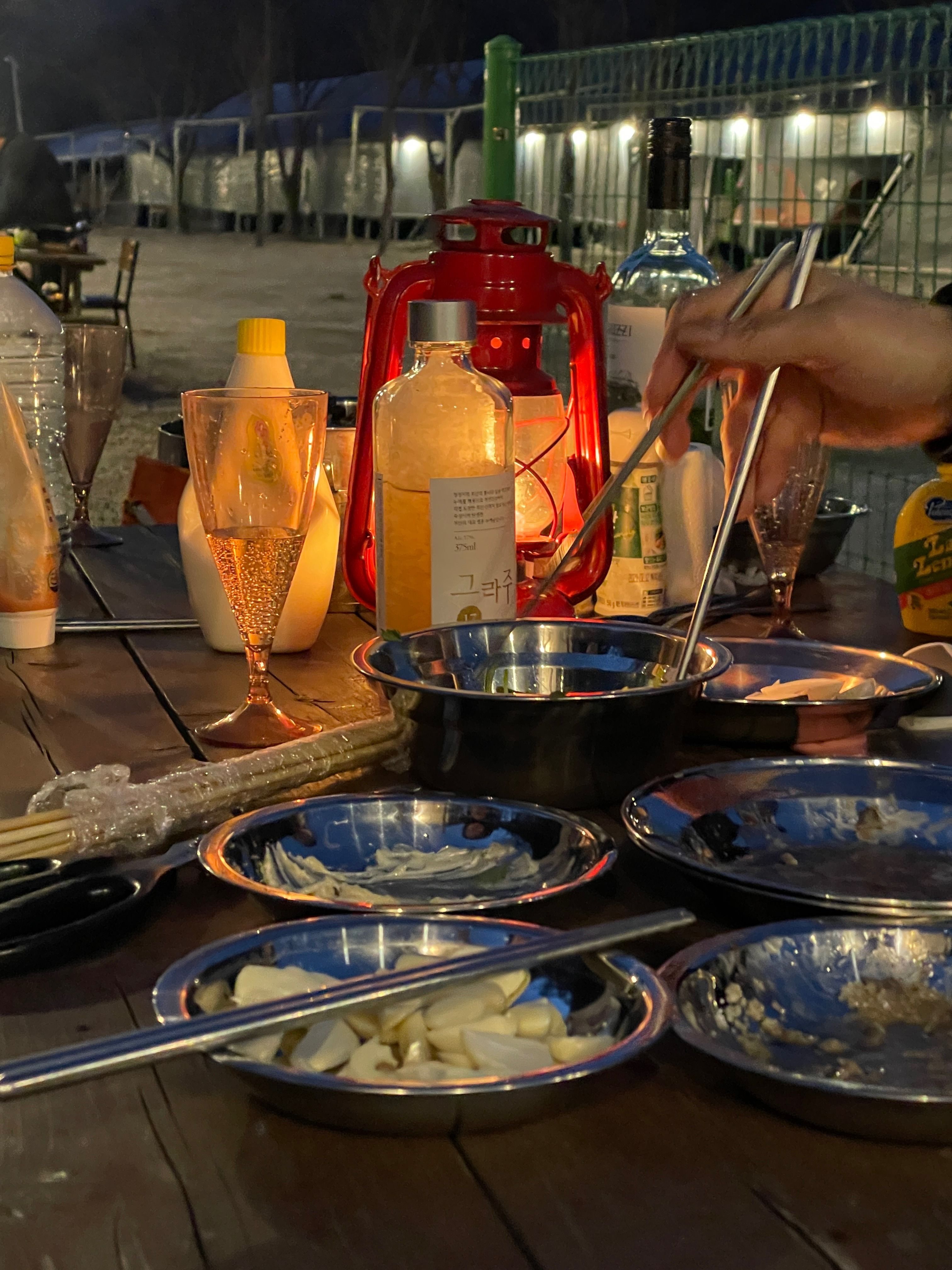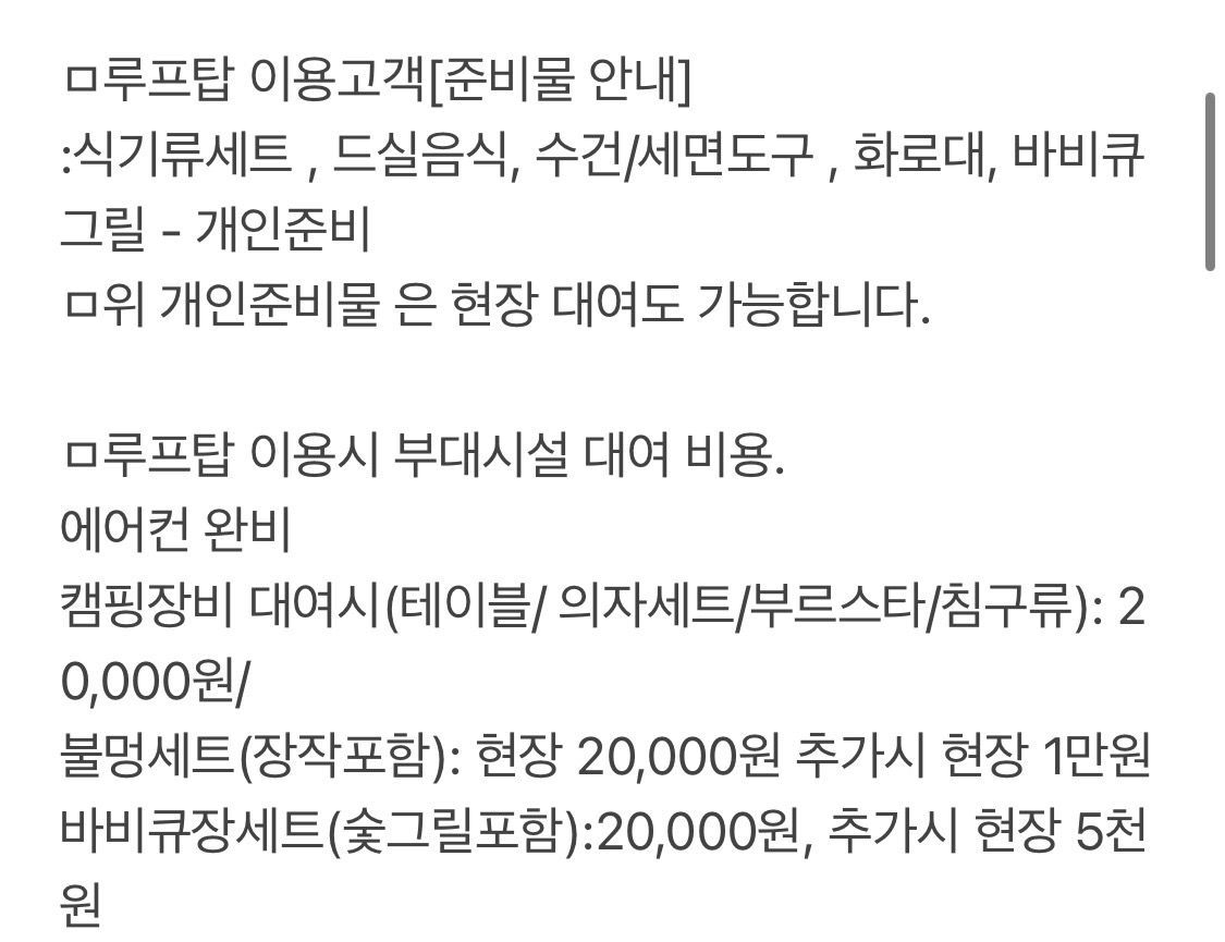 저희가 비행기 결항때문에 캠핑장 도착시간이 늦어질거라고 말씀 드렸더니 “사람들 10시에 오고 11시에 오고 다와요” 라고 하셨고 그때 대여 가능여부, 냄비나 집게 등 있는지 여쭤봤습니다
