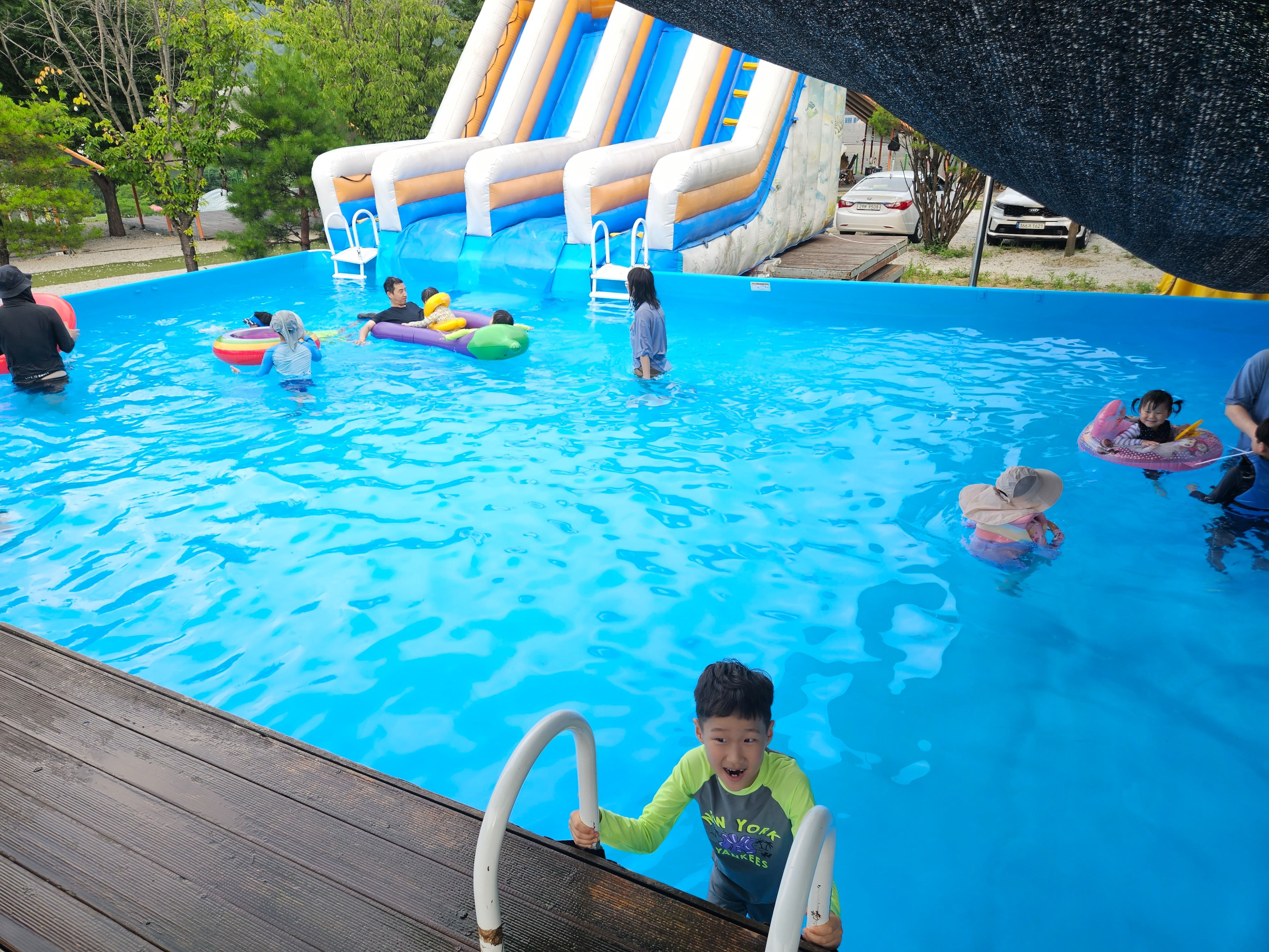 수영장은 카라반 말고도 텐트 글램핑 가족들과도 같이