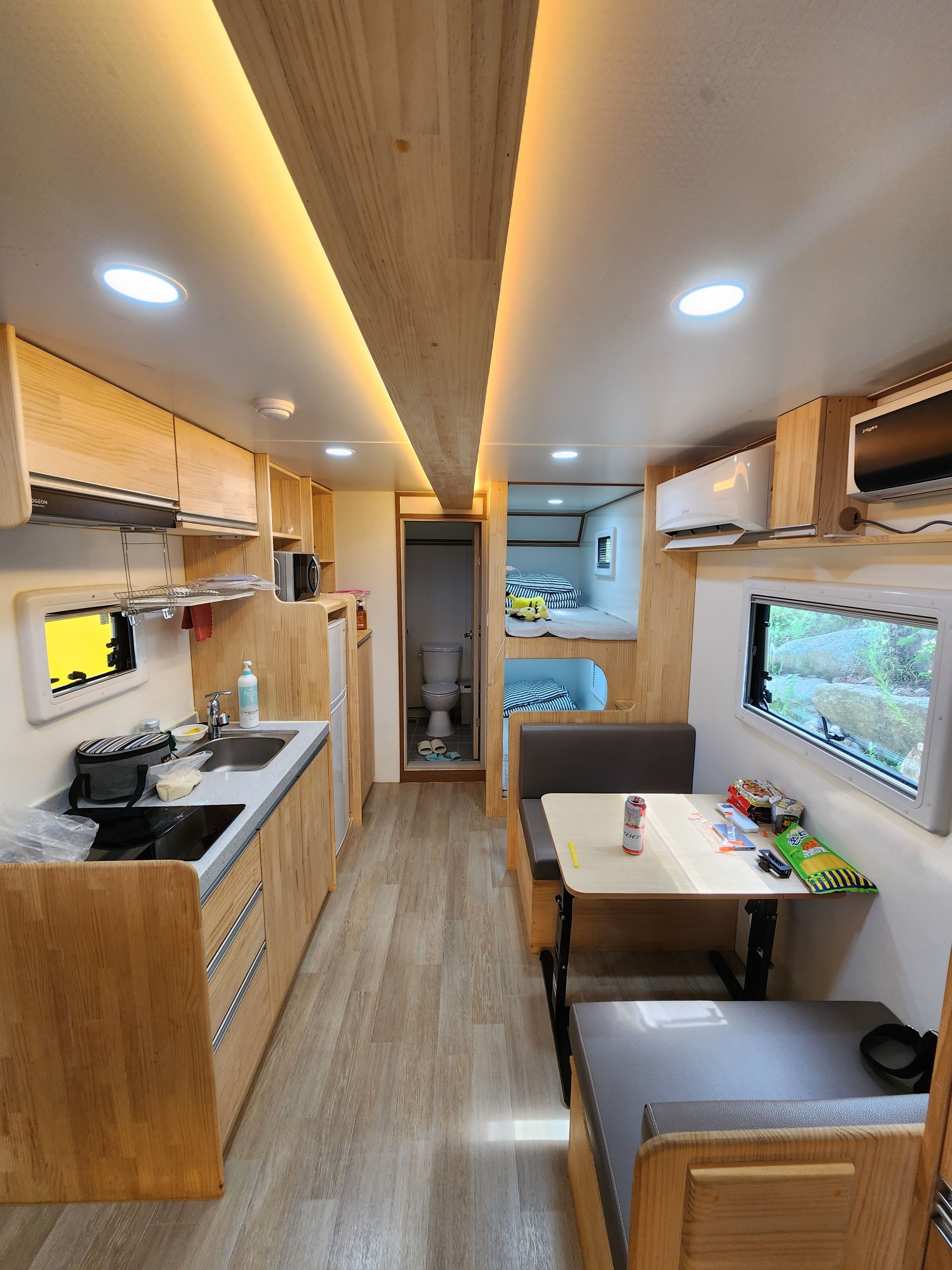 모형카라반이 아닌 진짜 카라반 경험해봐서 좋은 경험이였어요 처음엔 4식구에게는 작다.. 라고 느꼈지만 적응이되고 보니 아늑하고 좋더라구요 ㅎㅎ