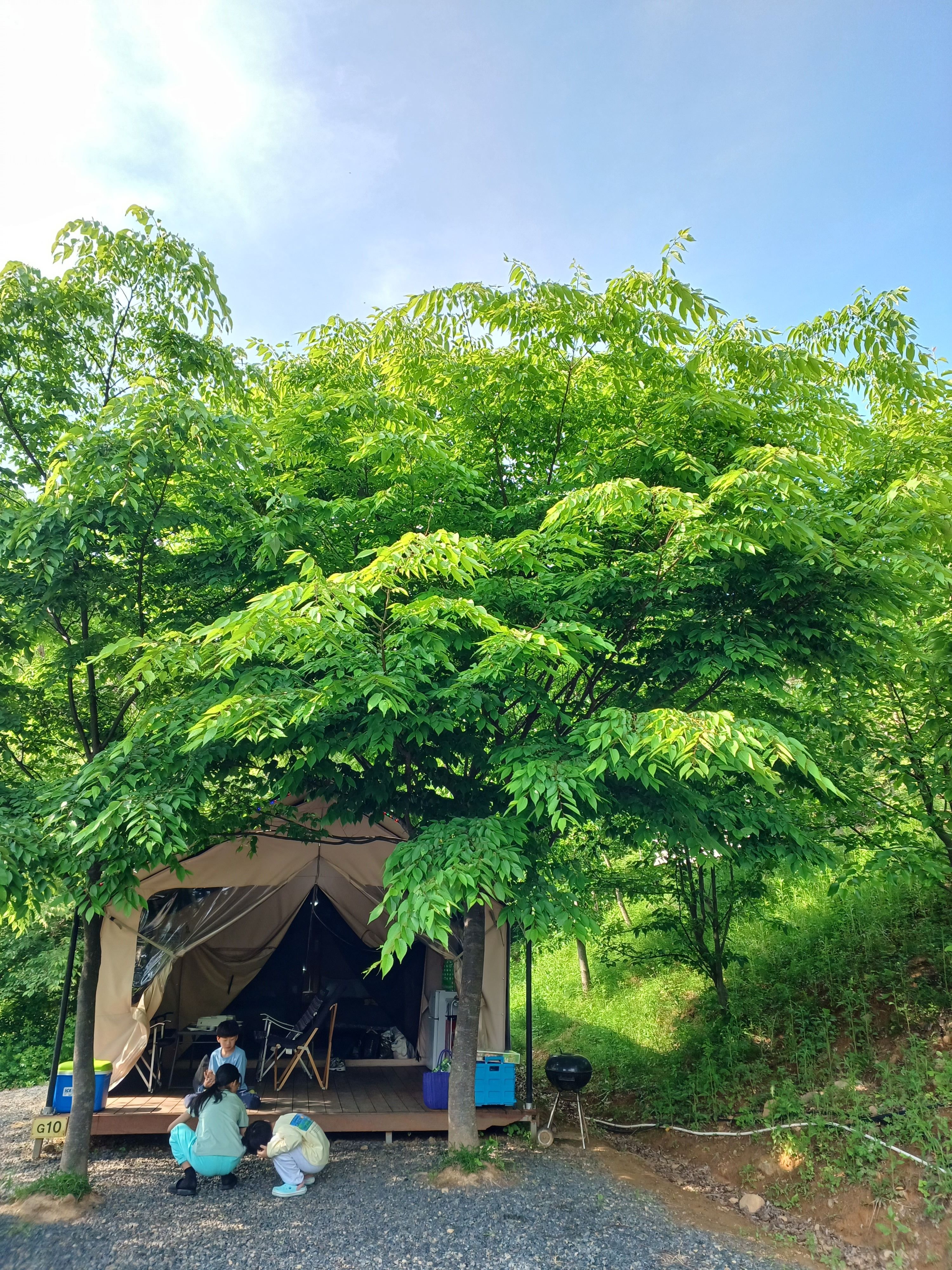 아이랑 둘이 갔는데 사장님이 친절하시고 뷰가 너무 좋아서 좋았어요 ㅎㅎ 저희 사이트에 그늘이 없어서 낮에는 텐트에만 있었는데 에어컨이 있어 시원했어요 ㅎ