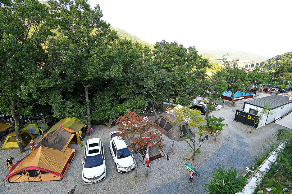 경호강캠핑장은경남 산청군 방목리에 위치하고 있다. 뒤쪽으로 지리산 웅석봉이 캠핑장을 에워싸고 있어, 청량한 공기를 맛볼 수 있으며, 앞쪽으로는 경호강이 흐르고 있어, 여름이면 어린이들과 물고기잡이 등의 물놀이를 할 수 있다. 이곳은 30여 개의 파쇄석 사이트를 가지고 있으며, 사이트 수에 비해 화장실과 샤워장, 개수대가 2군데씩 있어 캠퍼들이 높은 점수를 주고 있기도 하다. 또한 펜션도 함께 운영하고 있어 단체관광객들의 경우 야영장과 펜션을 동시에 예약할 수 있다. 무엇보다 캠핑장이 편백나무 숲으로 둘러싸여 있어 피톤치드 효과로 건강도 챙기면서 캠핑을 즐길 수 있으며, 어린이들의 최고 놀이터인 트램펄린은 안전을 위하여 2군데로 나누어져 있어, 기다릴 필요 없이 안전하게 뛰어놀 수 있다.