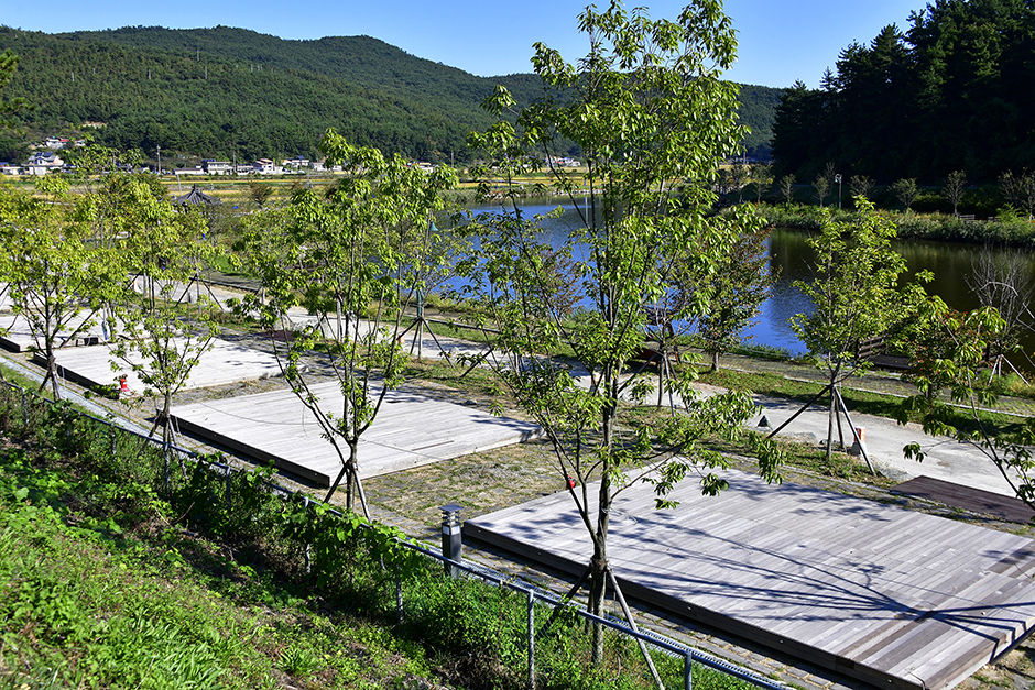 고포수변공원 캠핑장은 경남 하동군 금성면에 위치하고 있다. 카라반과 펜션이 함께 있는 캠핑장으로, 사이트 간격이 넓어 여유롭게 텐트를 설치 할 수 있다. 캠핑장은 두 군데로 나뉘어져 있으며 A사이트는 계단 밑 도로에 주차 가능하지만, 바로 곁에 저수지가 있어 낚시도 즐길 수 있는 풍광 좋은 자리이다. B사이트는 텐트 옆으로 바로 주차를 할 수 있어 무거운 짐을 옮기는 수고를 덜어주고 있다. 각 사이트마다 데크 2개당 쓸 수 있는 배전함이 설치돼 있어 전기사용이 편리하며, 와이파이도 무료로 사용할 수 있다. 또한 공용시설로 깨끗한 화장실과 샤워장, 개수대가 마련돼 있고, 어린이들이 좋아하는 트램펄린을 설치해 놓았으며 킥보드를 탈 수 있는 공간도 있다. 캠핑장 내 반려견 동반 입장이 가능하다. 더불어 근처 갯벌에 나가면 자연학습체험도 가능하다.