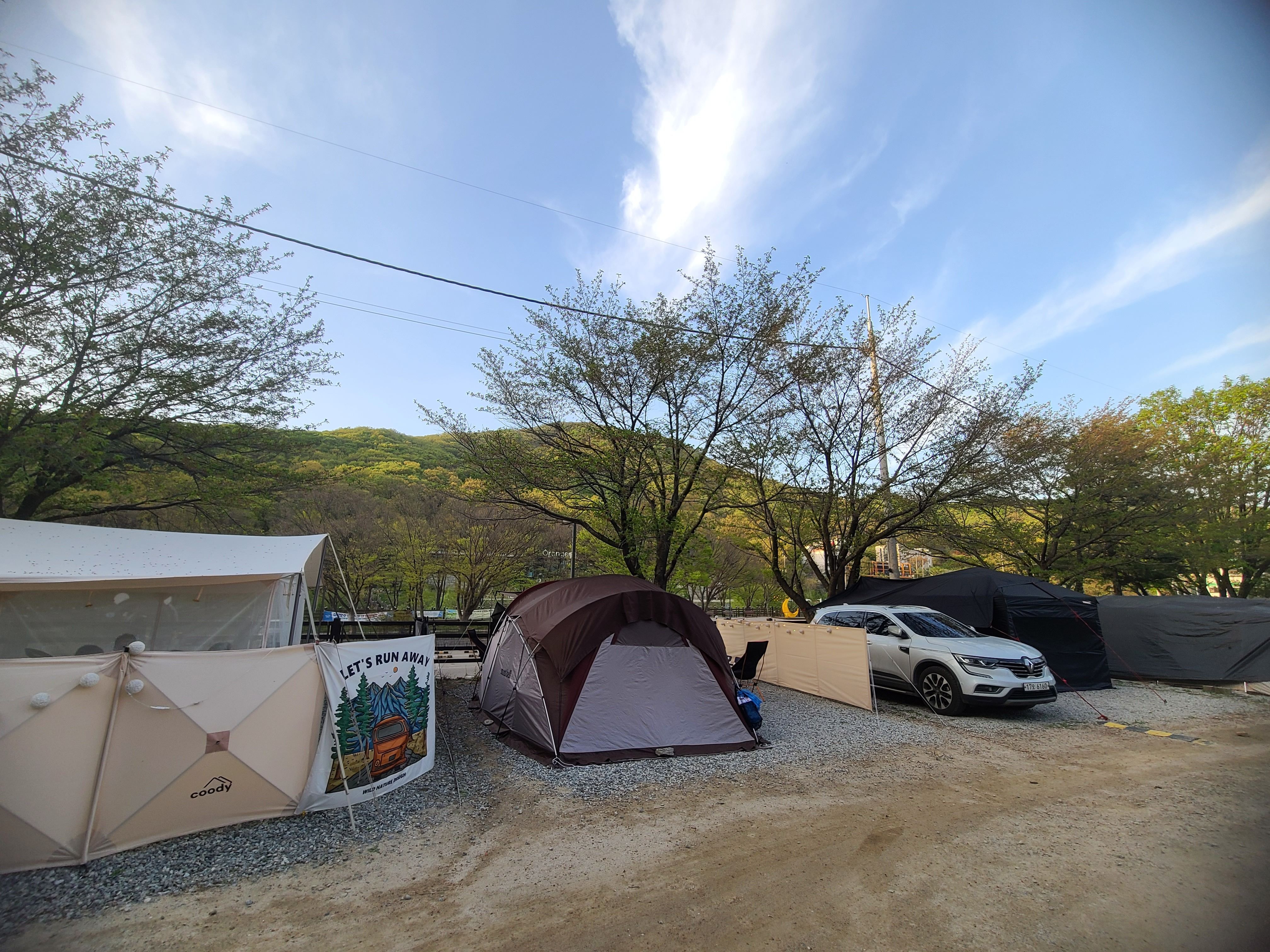 첨가본 마장호숫가 기산골캠핑장! 나름 철저히 관리되는 캠핑장과 있을건 다있는 시설들,친절하신 사장님까지~뭐하나 빠지는게 없는 곳!! 다만, 새벽녘에 부릉부릉~차소리가 난다는게 유일한 흠이라면 흠~!! 담에 또 뵙겠습니다~😁👊🙏