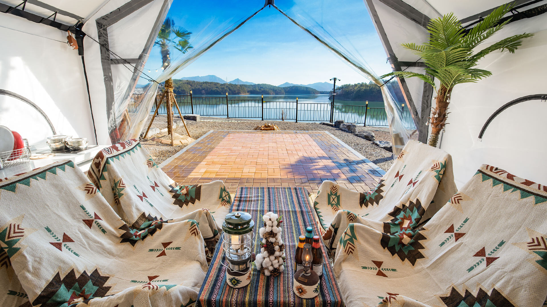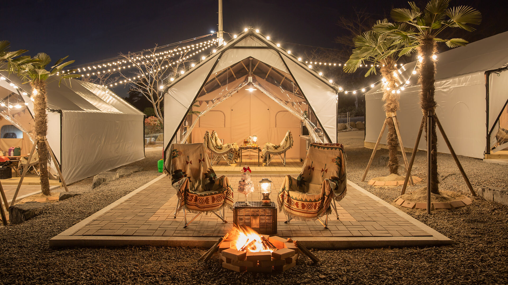 경남 사천의 끝자락에 있는 비토섬은 거북이의 꾀임으로 용궁에 간 토끼가 간을 빼앗길 뻔 했다가 기지를 발휘해 살아 돌아온다는 이야기인 전래동화 별주부전의 이야기가 전해지는 곳이다. 사천에서 비토교를 건너 비토섬으로 들어가면 가장 먼저 솔섬을 만난다. 비토섬과 연결되는 끝자락에 비토애 글램핑이 있다. 해변에 인접한 언덕에 자리 잡고 있어 밀물때는 파도 소리와 바다 내음을 맡으며 자연을 만끽할 수 있다. 썰물 때는 갯벌로 내려가 해루질을 하는 재미가 쏠쏠하다. 글램핑은 다섯 동이 있고 글램핑 객실 옆으로 분위기 좋은 카페도 운영한다.