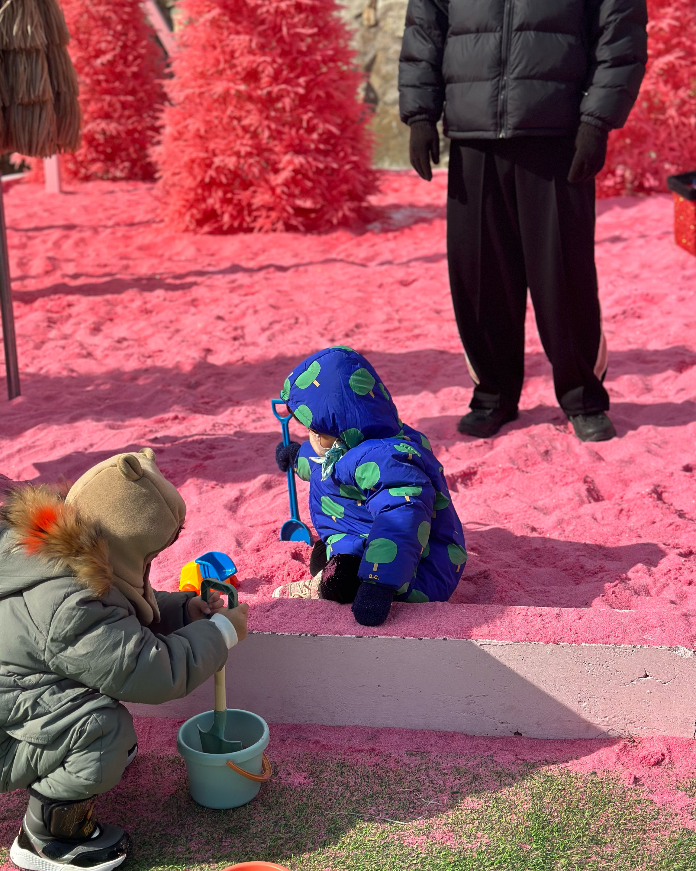 눈썰매도 짧지만 스릴있어서 아이들이 너무 좋아하고 핑크모래존에서 사진찍으니 너무 예쁘게 잘 나오네요~