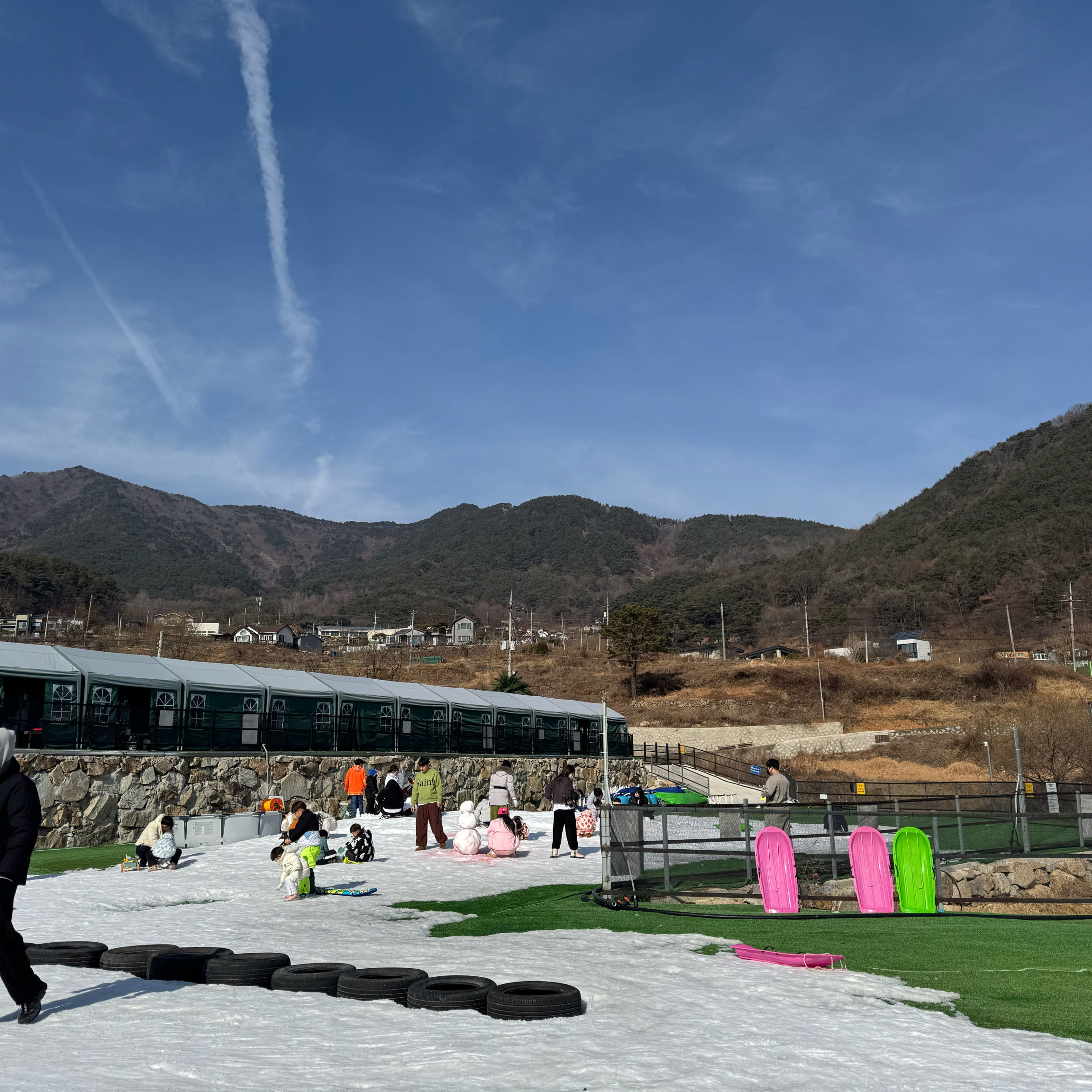 아이들이랑 놀기 딱 좋은 곳이에요🫶 눈썰매장있어서 아이들이 좋아하고 마시멜로굽기나 간단하게 밥먹기 좋아요 주말 하루 아기들이랑 여행하기좋습니당