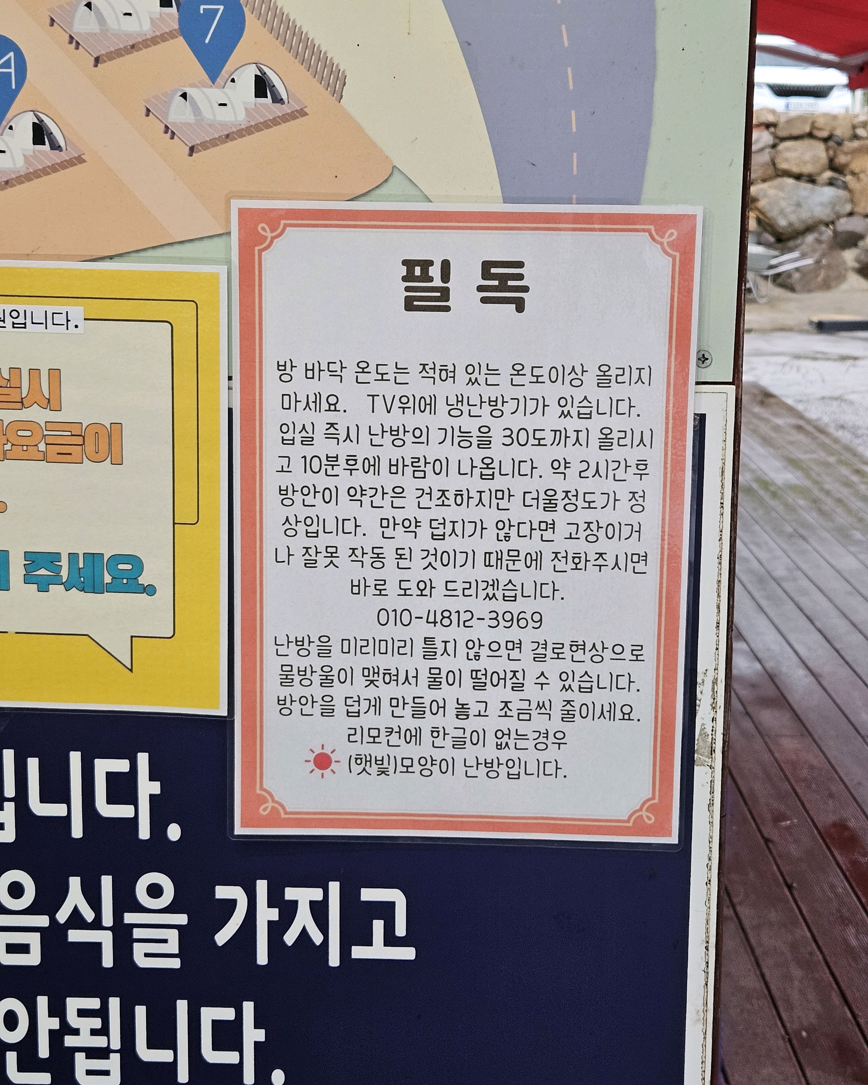 다만 좀 아쉬웠던거는 저희가 5명이라 추가요금을 결제했는데 따로 마련된 침구류를 더 주시지는 않았다는점(그러면 추가요금은 왜..)과, 비온 다음날이라 그런가 침구에서 빨래덜말린 꿉꿉한 냄새가 났던게 단점이었던것같아요.