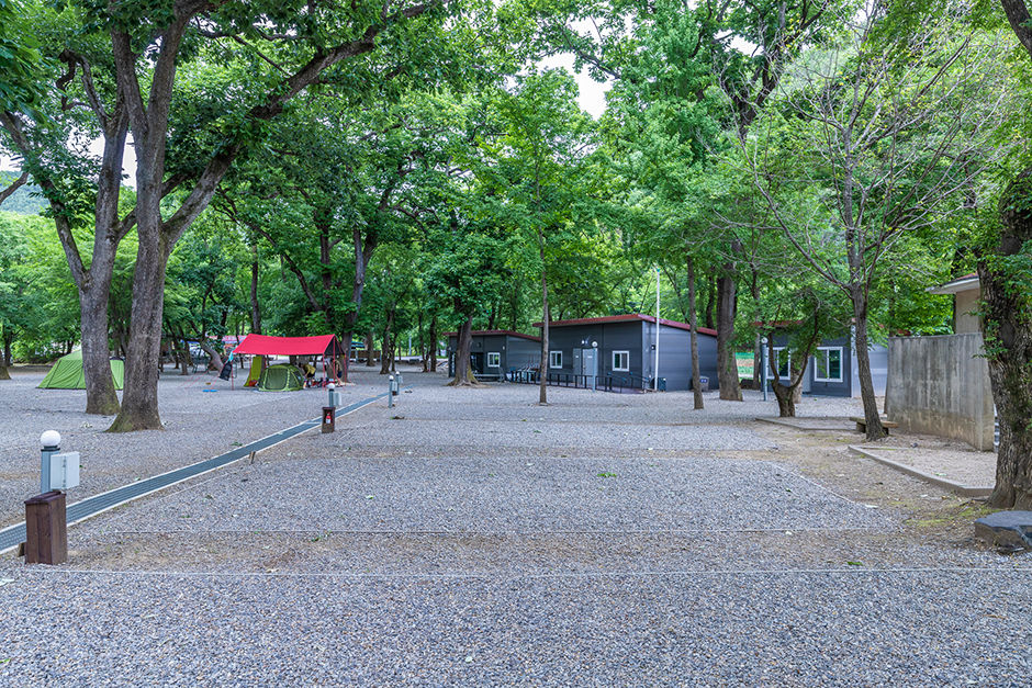 금관숲 캠핑장은 충북 청주시 상당구 미원면에 있다. 청주시청을 기점으로 30Km 가량 떨어졌다. 자동차를 타고 산성으로, 남부로, 운암계원로를 차례로 거치면 닿는다. 도착까지 걸리는 시간은 30분 안팎이다. 캠핑장에 발을 들이면 굵직한 수목 그늘이 시선을 끈다. 안쪽으로 들어가면 보는 것만으로도 시원해지는 계곡이 즐거움을 선사하는 이곳은, 한여름 무더위를 물리칠 수 있는 모든 요소를 갖췄다. 캠핑장에는 오토캠핑 사이트 39면이 있다. 바닥 형태는 모두 파쇄석이며, 크기는 가로 5.5m 세로 7~8m다. 안전을 감안해 캠핑장 내부에 차량 출입을 통제하고 있다. 대신 장비를 옮길 손수레를 대여해준다. 이곳에는 당일 피크닉 구역도 운영 중이다. 오전 중 언제든 들어와서 오후 7시 전까지만 나가면 된다. 소형견에 한해 동반 입장을 허용하며, 목줄 착용은 필수다.