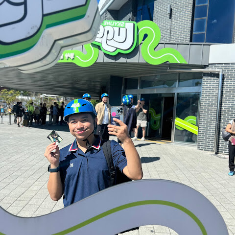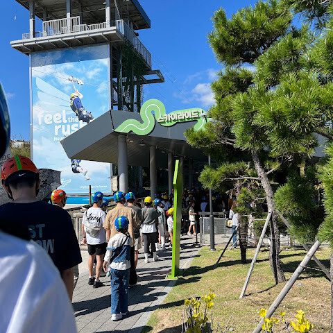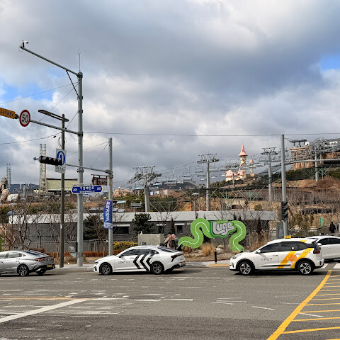 저는 루지 & 토보건(총 4개의 트랙이 있었어요)을 4회 이용하고, 부산 관광 패스를 이용해서 짚라인도 타봤어요(각기 다른 날에요). 싱가포르에서 루지 & 토보건을 타본 적이 있는데, 여기가 서비스도 더 좋고, 탑승 시간도 더 길고, 대기 시간도 짧아서 더 좋았어요. 중요한 물건은 없고 기내용 캐리어 하나만 가지고 갔는데, 싱가포르에서는 카운터에 맡길 수 있었지만 부산에서는 유료 락커로 가라고 하더라고요. 락커에 짐을 넣고 보니 캐리어가 거의 안 들어가서 억지로 구겨 넣어야 했어요. 짚라인을 타려면 케이블카를 타기 전에 장비를 갈아입어야 해요. 처음에는 실수로 케이블카를 타러 갔는데, 직원분이 먼저 장비를 갈아입으라고 알려줬어요. 케이블카에 장비를 들고 타는 건 재밌는 경험이었지만, 장비가 꽤 무거워서 아이들에게는 좀 힘들 수도 있을 것 같아요. 장비를 갈아입을 때는 동의서를 작성해야 해요. 장비 교체와 운반을 도와주는 직원들이 많았고, 특히 여성 직원들은 매우 매력적이었습니다. 하지만 짚라인은 너무 짧아서 그다지 스릴 넘치지 않았습니다. 둘 중 하나를 고르라면 루지 & 토보건을 선택하겠습니다. 티켓 교환은 모든 사람이 직접 해야 하므로, 다른 사람이 대리 교환할 수 없습니다. 또한 부산월드와 짚라인 진입로 사이의 거리가 꽤 멀고, 오르막과 내리막이 반복됩니다. 출구는 아마 그 중간쯤에 있을 것 같습니다.