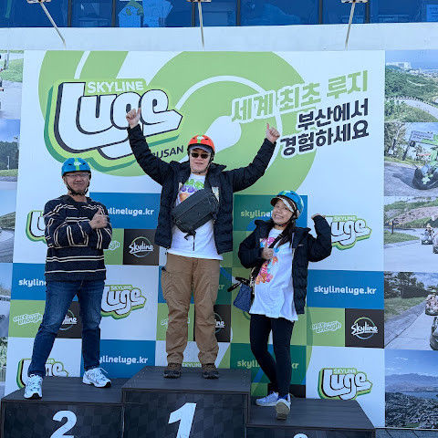 워낙 외국인이 많아서인지 저희에게도 영어하시더라고요 ㅎ̌̈ ㅎ̌̈ ㅎ̌̈ ㅎ̌̈ ㅎ̌̈ ㅎ̌̈ 루지의 4가지 길이 있는데 길에 대한 상세 안내가 없는게 아쉬웠어요. wind길 끝엔 배수망이 있어서 지나갈때 엉덩이가 아팠어요 전반적으로 루지 관리나 리프트관리도 잘되있었어요~ 리프트에서 내려다보는 뷰와 롯데월드뷰도 좋고요 forest,wind 방향은 바다뷰를 보실 수 있어요