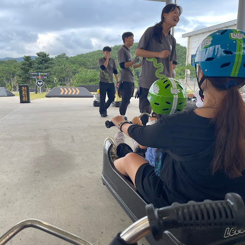 워낙 외국인이 많아서인지 저희에게도 영어하시더라고요 ㅎ̌̈ ㅎ̌̈ ㅎ̌̈ ㅎ̌̈ ㅎ̌̈ ㅎ̌̈ 루지의 4가지 길이 있는데 길에 대한 상세 안내가 없는게 아쉬웠어요. wind길 끝엔 배수망이 있어서 지나갈때 엉덩이가 아팠어요 전반적으로 루지 관리나 리프트관리도 잘되있었어요~ 리프트에서 내려다보는 뷰와 롯데월드뷰도 좋고요 forest,wind 방향은 바다뷰를 보실 수 있어요