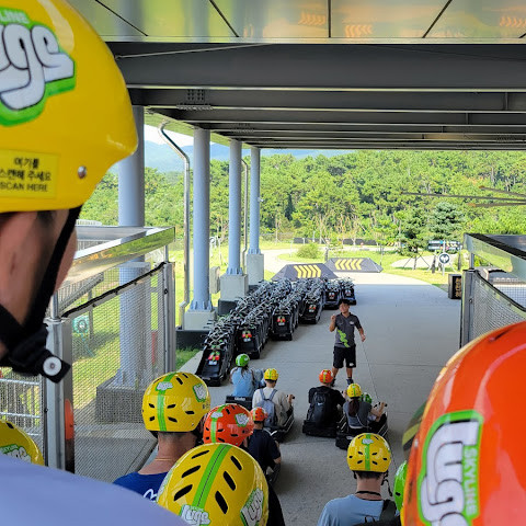 워낙 외국인이 많아서인지 저희에게도 영어하시더라고요 ㅎ̌̈ ㅎ̌̈ ㅎ̌̈ ㅎ̌̈ ㅎ̌̈ ㅎ̌̈ 루지의 4가지 길이 있는데 길에 대한 상세 안내가 없는게 아쉬웠어요. wind길 끝엔 배수망이 있어서 지나갈때 엉덩이가 아팠어요 전반적으로 루지 관리나 리프트관리도 잘되있었어요~ 리프트에서 내려다보는 뷰와 롯데월드뷰도 좋고요 forest,wind 방향은 바다뷰를 보실 수 있어요