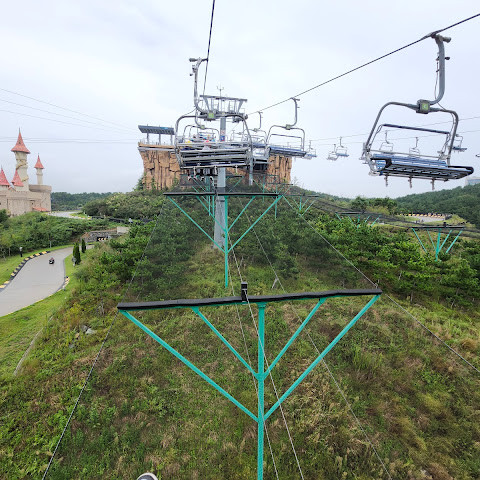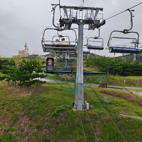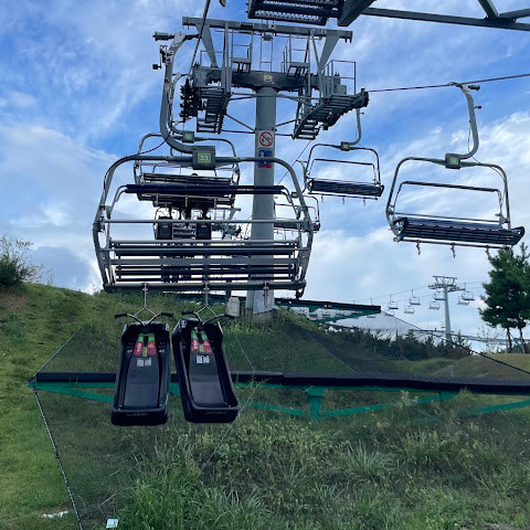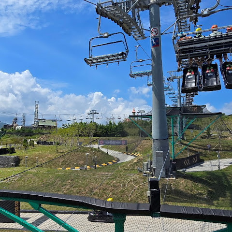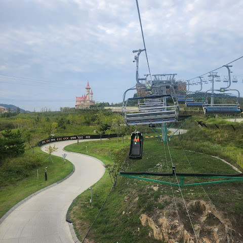 타고올라가서 루지타고 내려오며누되는데 코스도 4개나 되고 내려올때 바다보이는거도 좋았습니다