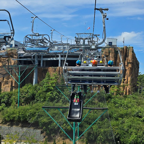 월요일에 미리 티켓을 구매하면 현장 구매보다 저렴합니다. 사람이 많지만 대기 시간이 길지 않고, 케이블카를 타고 경치를 구경할 수도 있습니다. 생각보다 스릴 넘치고 재밌고, 위험하다는 느낌도 들지 않습니다.