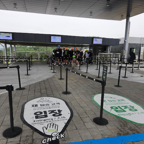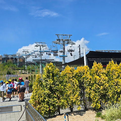 월요일 오전 10시쯤 갔어요. 앞에 줄이 10분 정도밖에 안 됐지만, 그 후에는 순조로웠어요. 짚라인을 두 번 탈 수 있는 부산 패스를 사용했는데, 공원에 들어가자마자 매표소에서 줄을 서야 했어요. 부산 패스 QR 코드를 보여줬더니 직원이 짚라인을 탈지, 아니면 그냥 탈지 중 어떤 걸 탈지 물어보고 규칙을 설명해 준 후 티켓을 발권해 주더라고요. 티켓을 받고 나서 머리에 맞는 헬멧을 골라 케이블카 직원에게 보여줬어요. (나중에 다른 분들이 헬멧을 쓰기 전에 위생용 머리 커버를 쓰고 있는 걸 봤어요. 직원에게 따로 받아야 할 수도 있어요. 🤔)